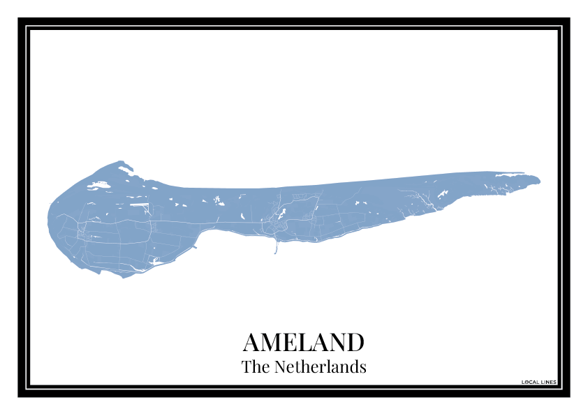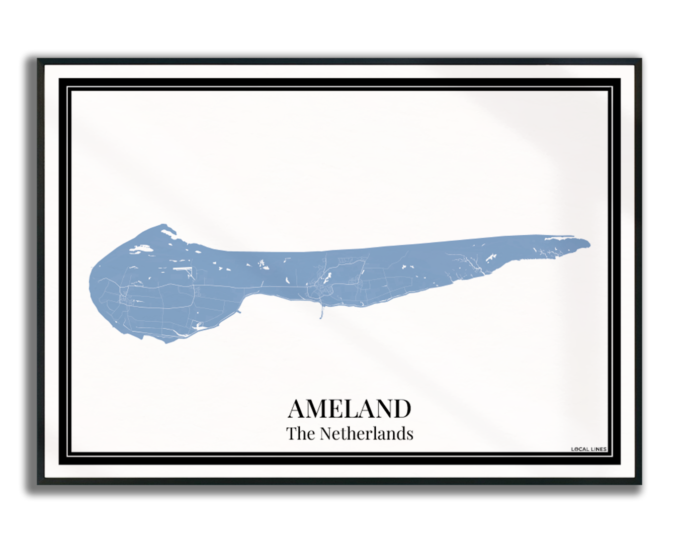 Ontdek de stad op een unieke manier met deze Ameland eilandkaart poster in blauw. De gedetailleerde plattegrond van Ameland laat de straten en plaatsen duidelijk zien en maakt deze print een echte blikvanger voor aan de muur.