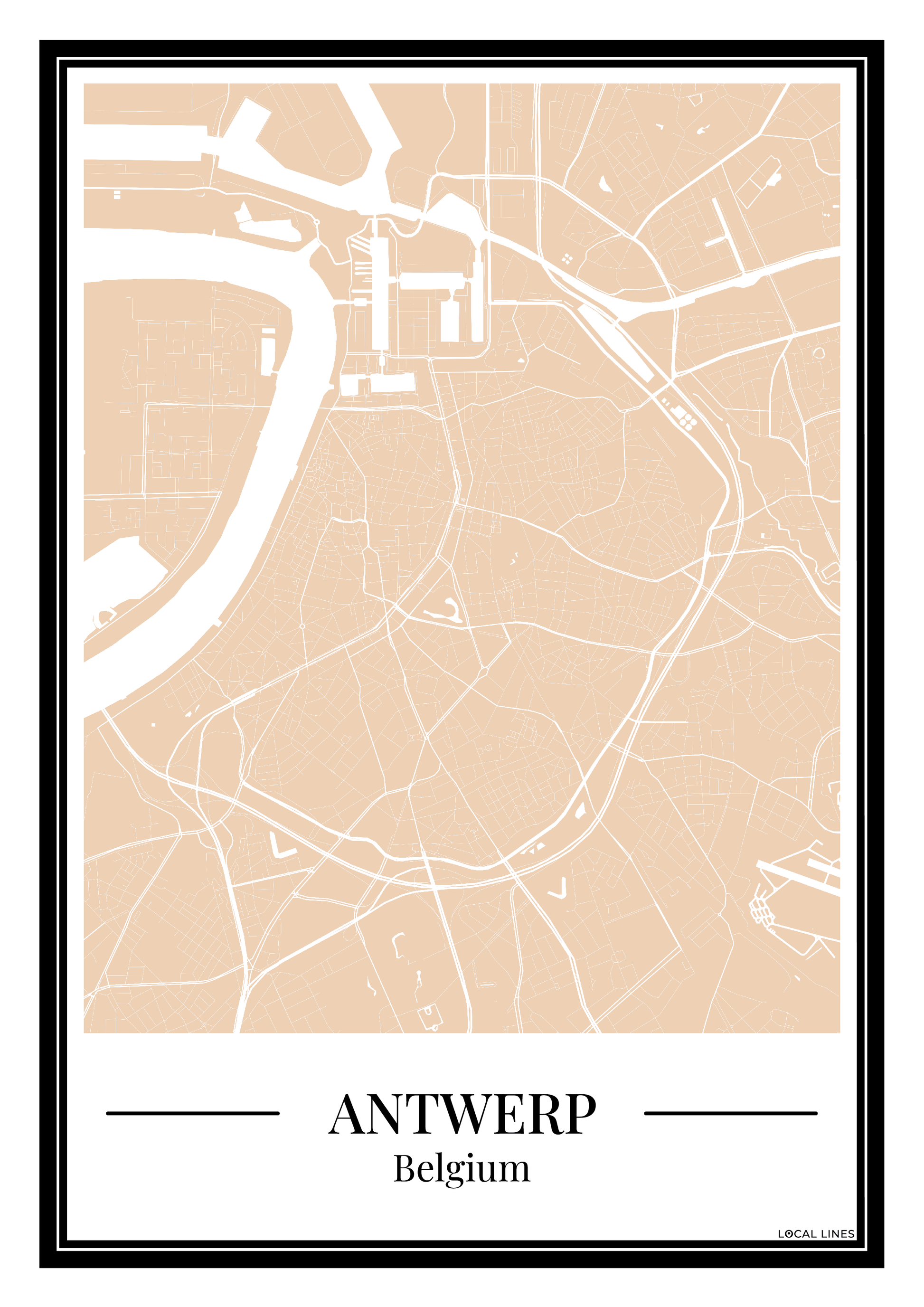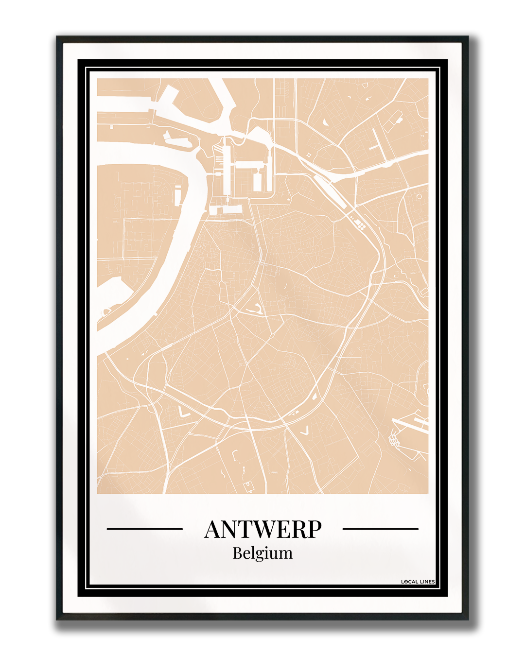 Geef je interieur een warme en stijlvolle uitstraling met deze Antwerpen stadskaart poster in beige. De gedetailleerde kaart laat de straten en wijken van Antwerpen duidelijk zien en maakt dit ontwerp een tijdloze toevoeging aan je wanddecoratie of een bijzonder cadeau voor elke gelegenheid.