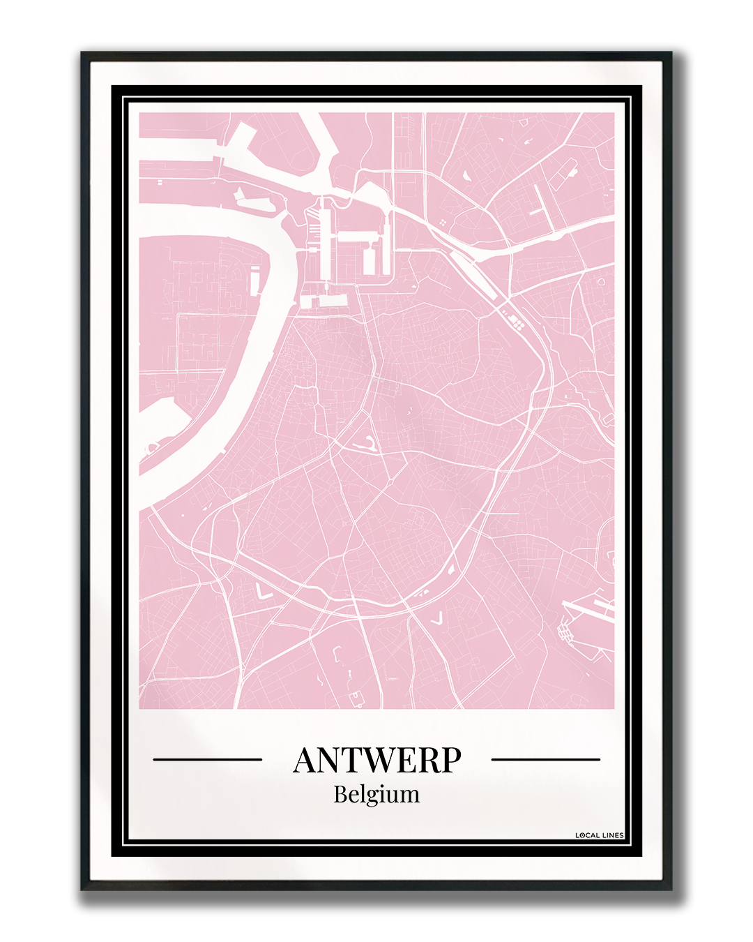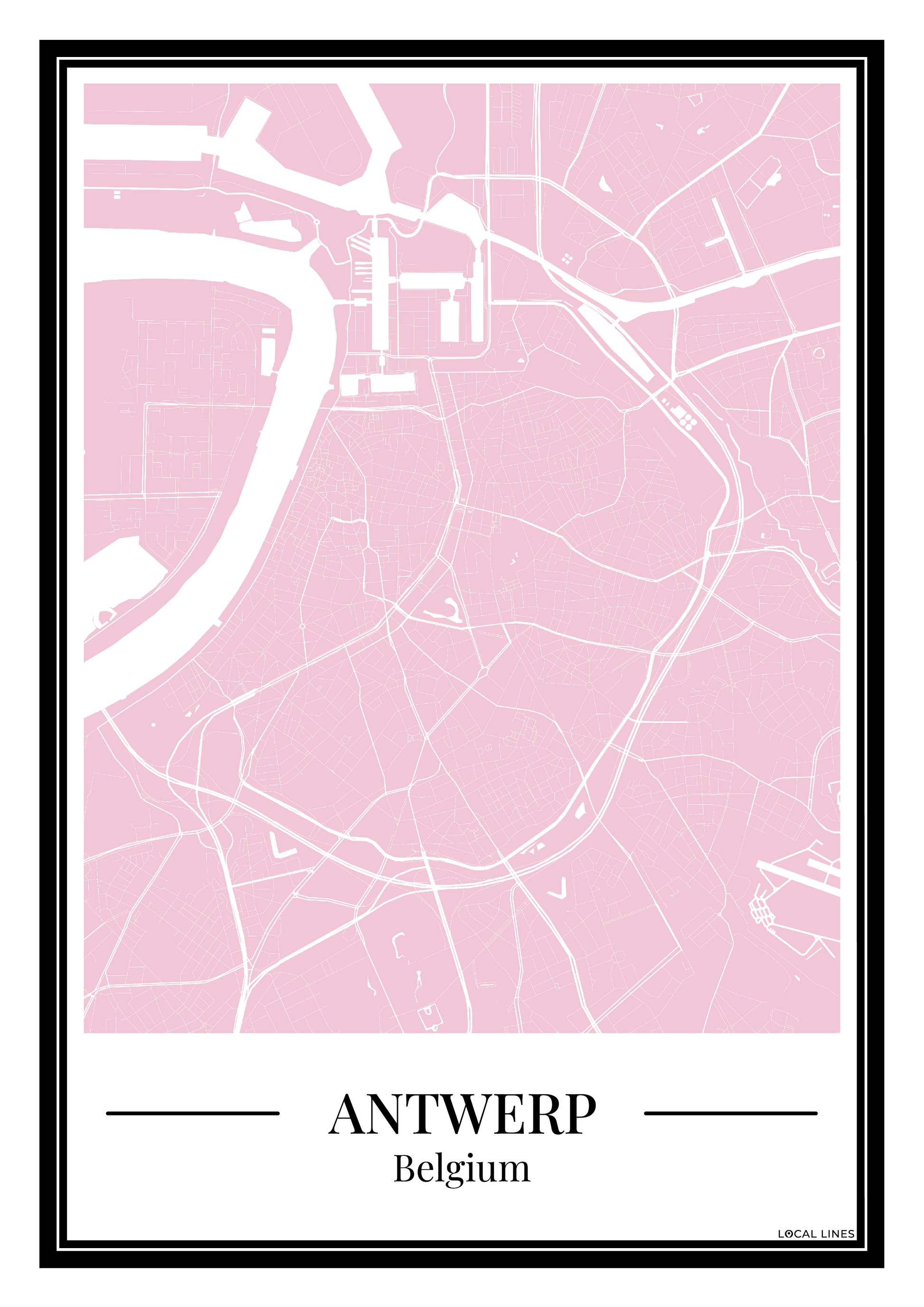 Breng Antwerpen in huis met deze roze stadskaart. De gedetailleerde plattegrond van Antwerpen maakt deze poster niet alleen geschikt als wanddecoratie, maar ook een origineel en persoonlijk cadeau.