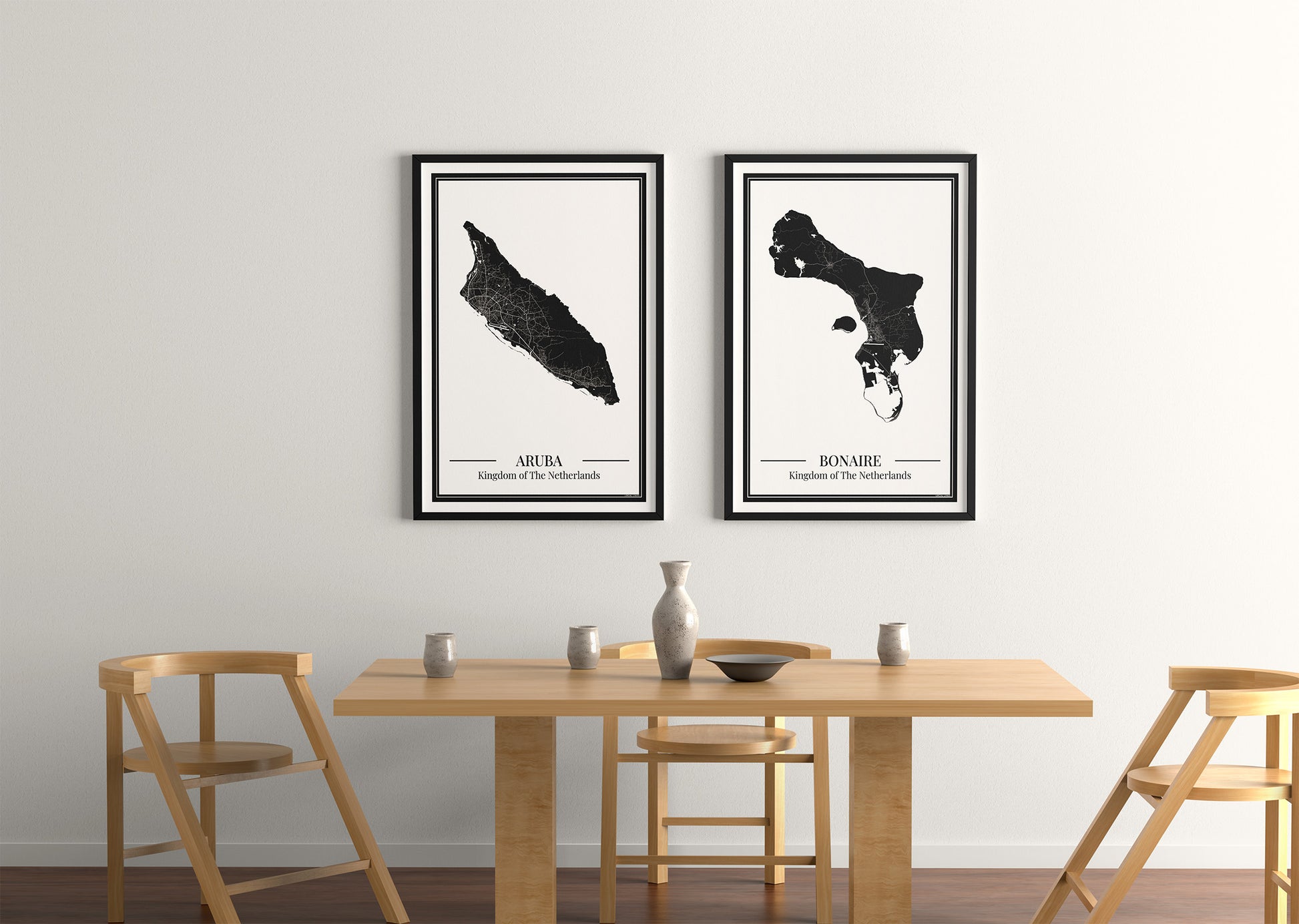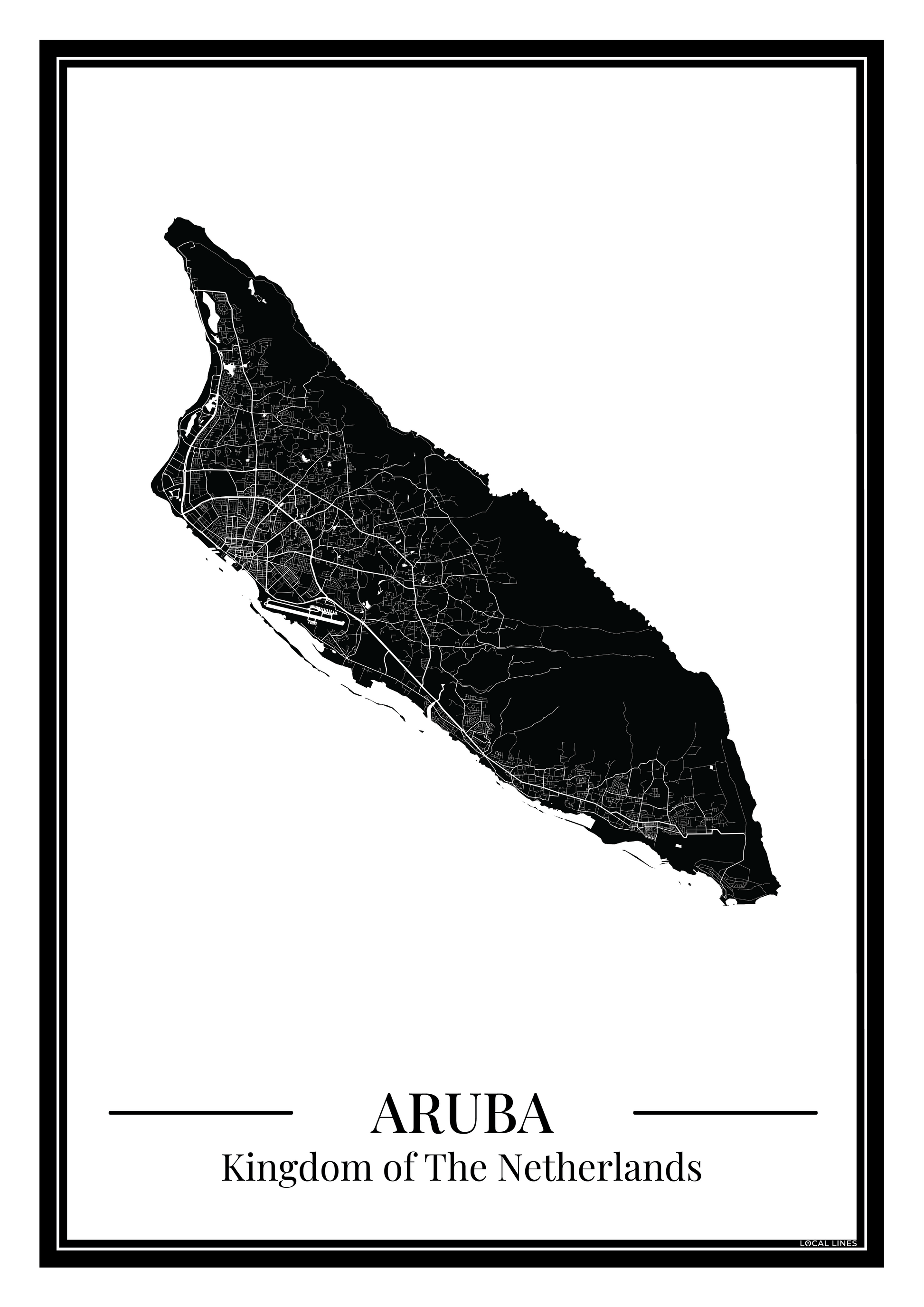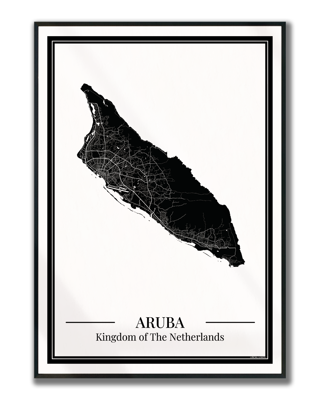 Geef je interieur een moderne en persoonlijke touch met deze Aruba poster. De zwarte eilandkaart toont alle straten en plaatsen en is ideaal als wanddecoratie of origineel cadeau.