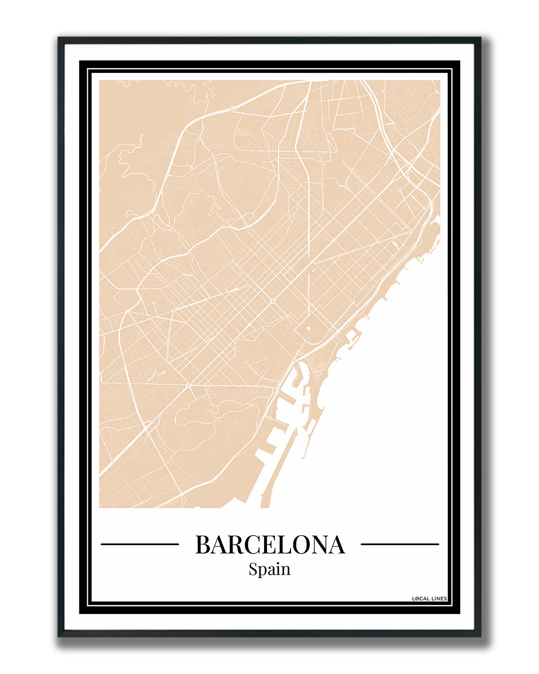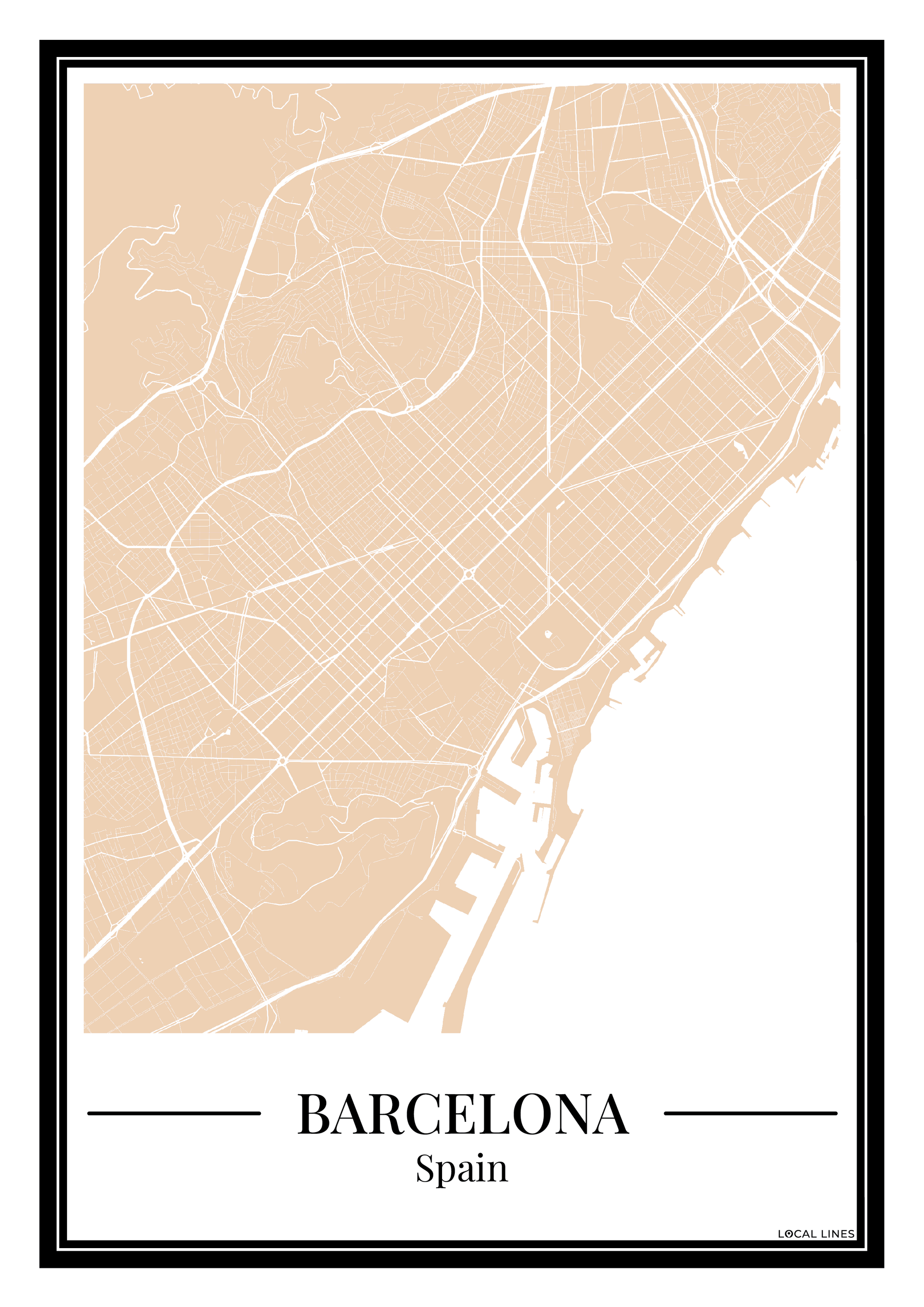 Geef je interieur een warme en stijlvolle uitstraling met deze Barcelona stadskaart poster in beige. De gedetailleerde kaart laat de straten en wijken van Barcelona duidelijk zien en maakt dit ontwerp een tijdloze toevoeging aan je wanddecoratie of een bijzonder cadeau voor elke gelegenheid.