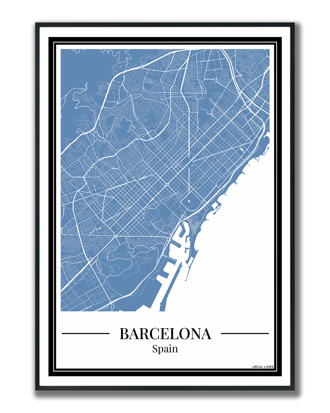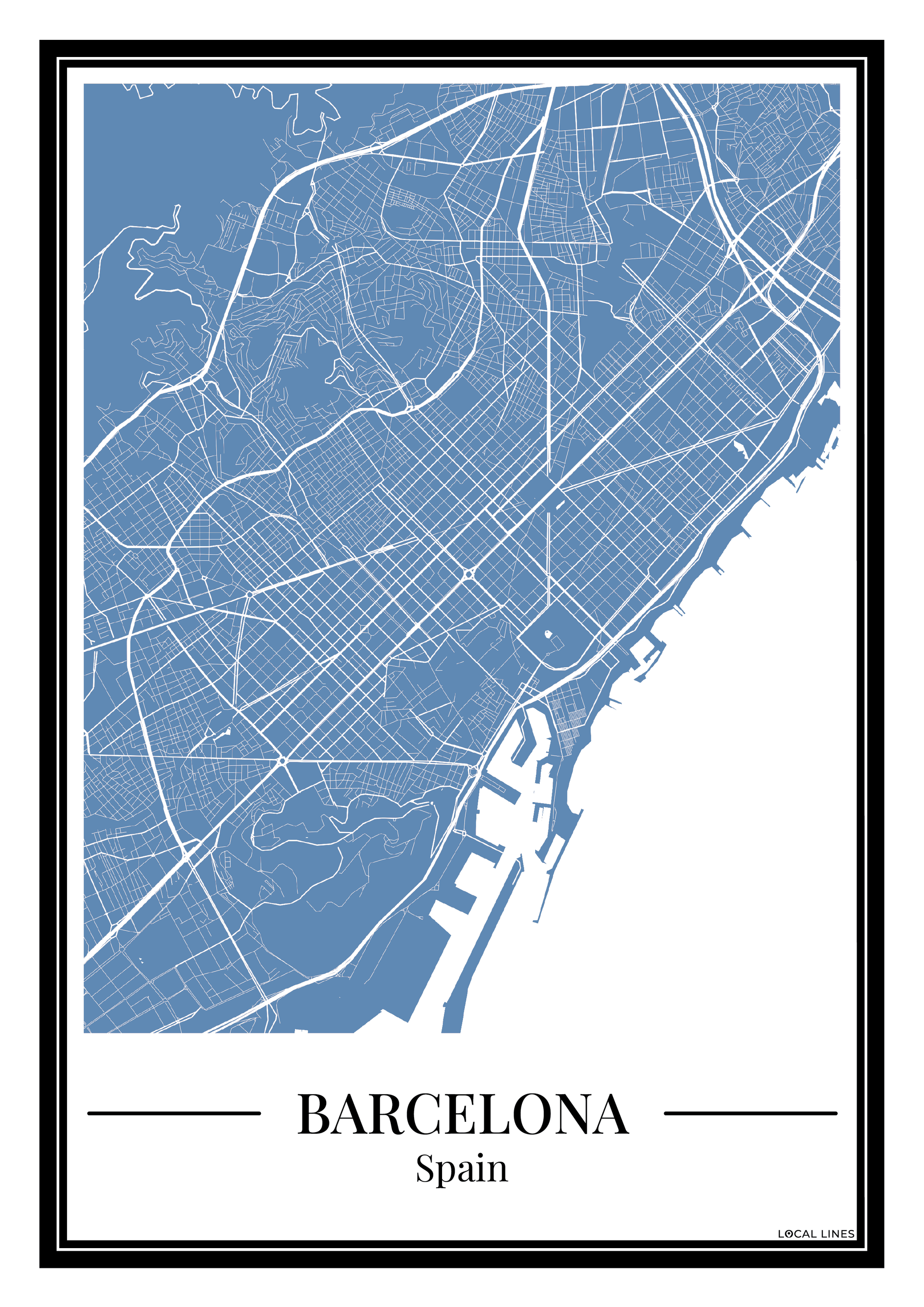 Ontdek de stad op een unieke manier met deze Barcelona stadsaart poster in blauw. De gedetailleerde plattegrond van Barcelona laat de straten en wijken duidelijk zien en maakt deze print een echte blikvanger voor aan de muur.