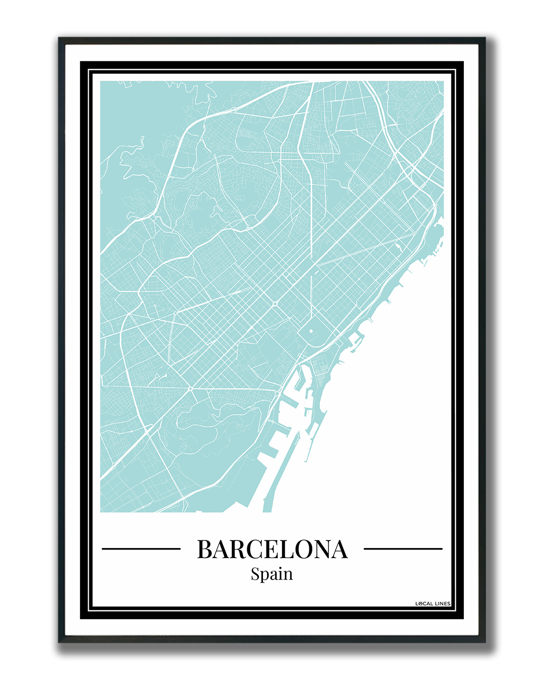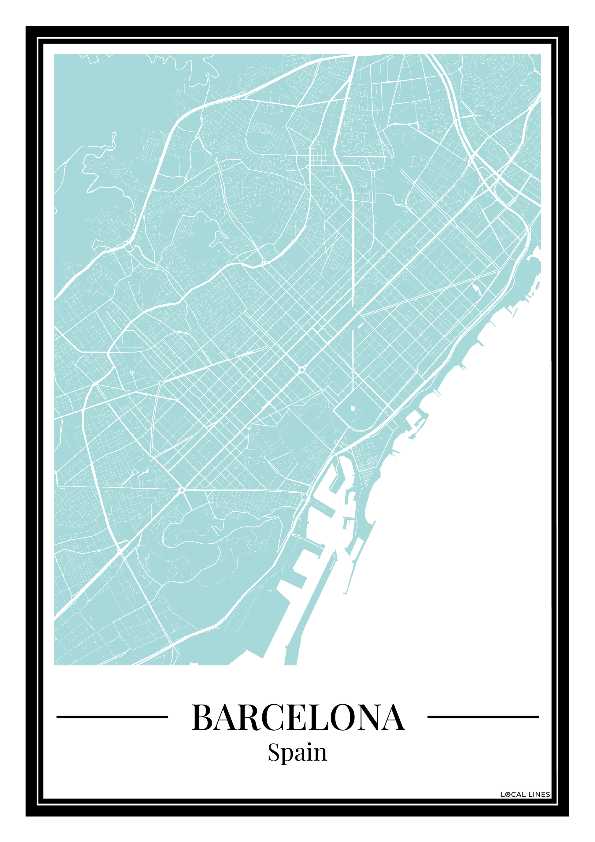 Breng een frisse en moderne sfeer in huis met deze poster van de Barcelona stadskaart in lichtblauw. De gedetailleerde plattegrond toont de straten en wijken van Barcelona op een stijlvolle manier, waardoor deze print een echte blikvanger is aan je muur. Perfect als persoonlijke wanddecoratie of als bijzonder cadeau voor een stadsliefhebber.
