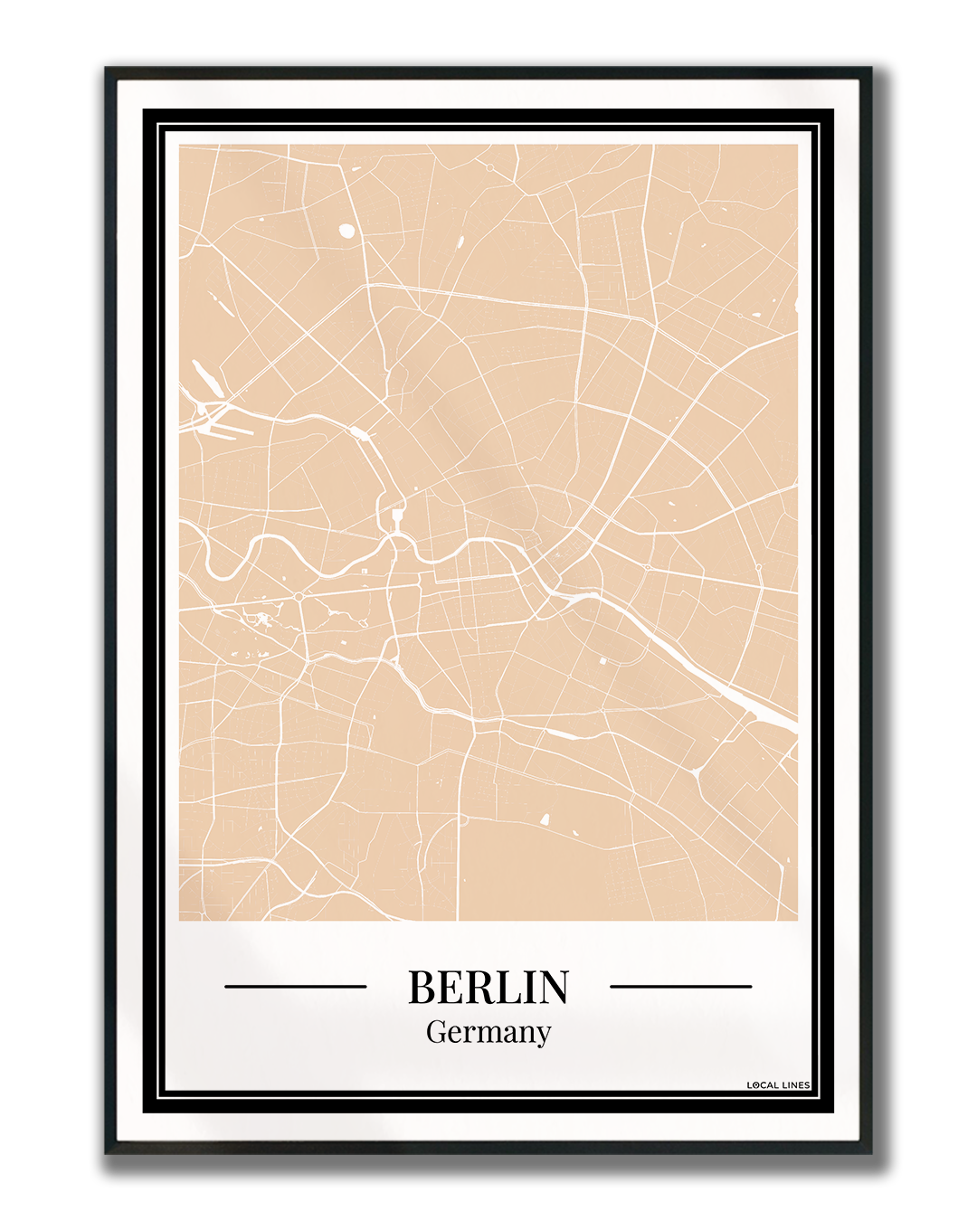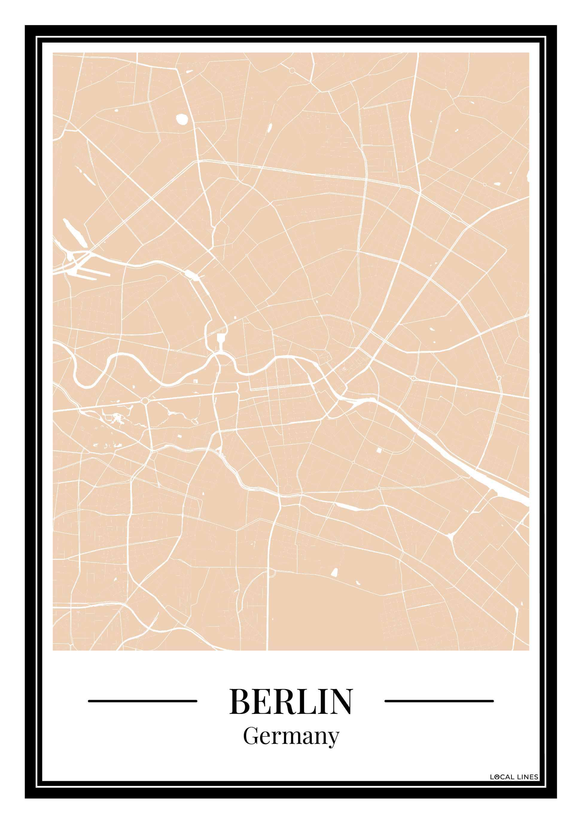 Geef je interieur een warme en stijlvolle uitstraling met deze Berlijn stadskaart poster in beige. De gedetailleerde kaart laat de straten en wijken van Berlijn duidelijk zien en maakt dit ontwerp een tijdloze toevoeging aan je wanddecoratie of een bijzonder cadeau voor elke gelegenheid.
