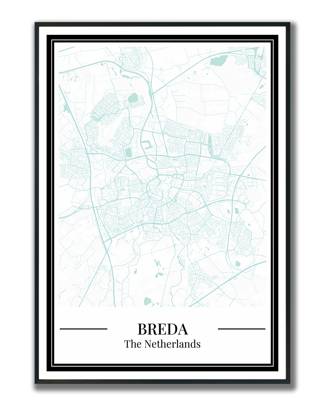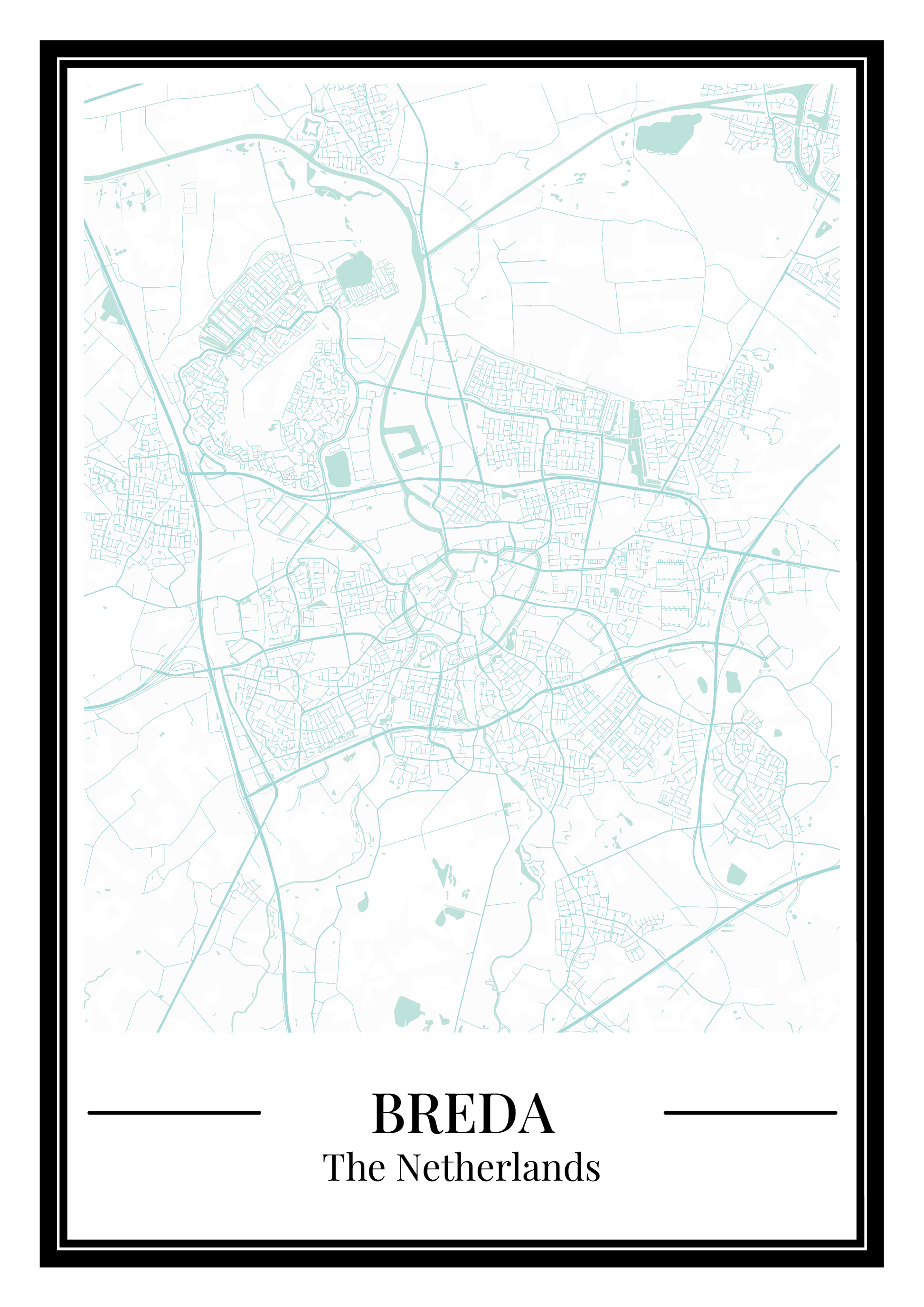 Breng een frisse en moderne sfeer in huis met deze poster van de Breda stadskaart in lichtblauw. De gedetailleerde plattegrond toont de straten en wijken van Breda op een stijlvolle manier, waardoor deze print een echte blikvanger is aan je muur. Perfect als persoonlijke wanddecoratie of als bijzonder cadeau voor een stadsliefhebber.