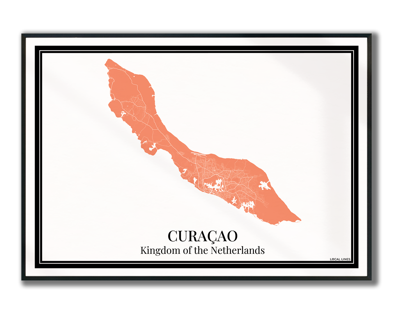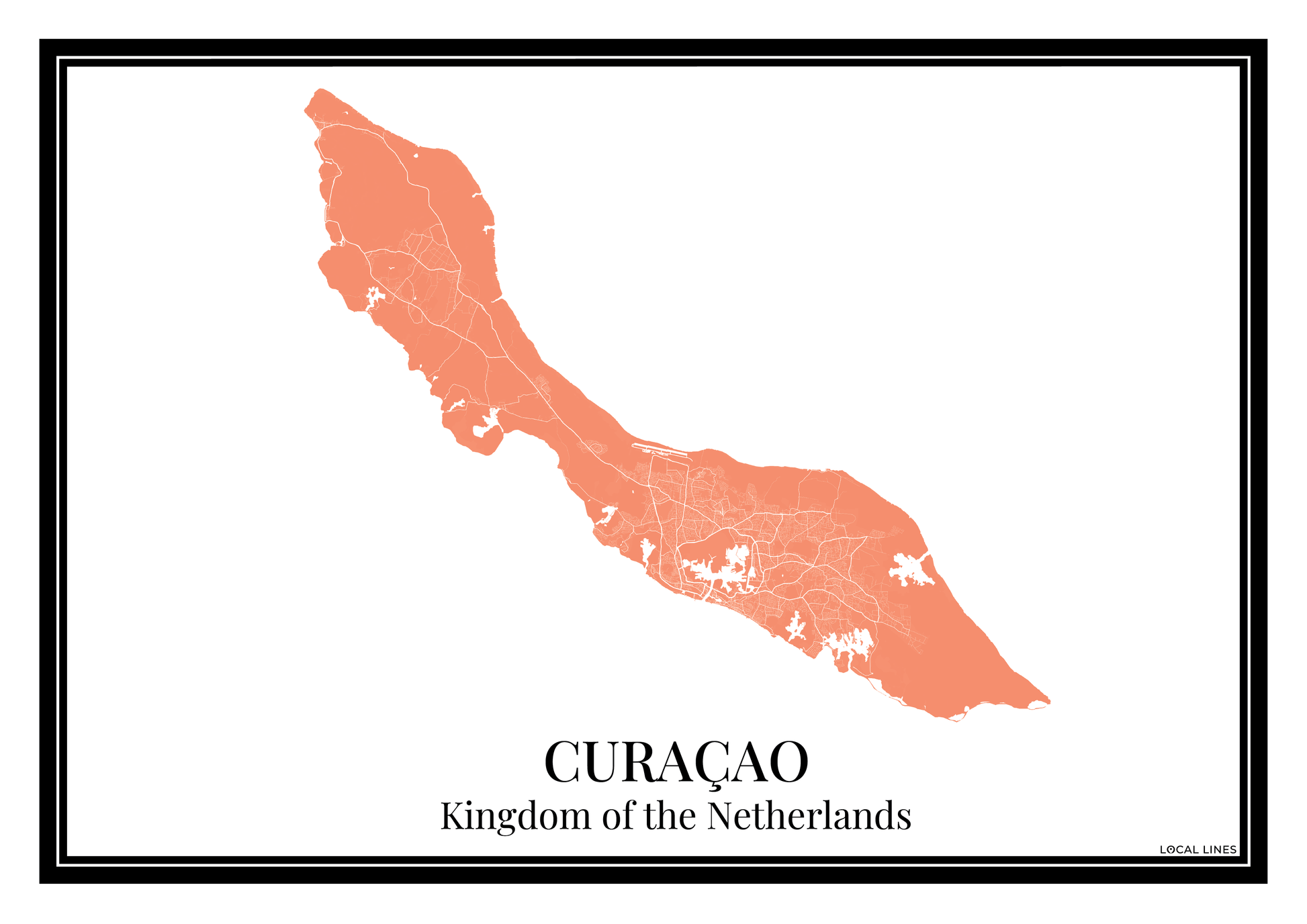 Geef je interieur een warme en stijlvolle uitstraling met deze Curaçao eilandkaart poster in oranje. De gedetailleerde kaart laat de straten en plaatsen van Curaçao duidelijk zien en maakt dit ontwerp een tijdloze toevoeging aan je wanddecoratie of een bijzonder cadeau voor elke gelegenheid.