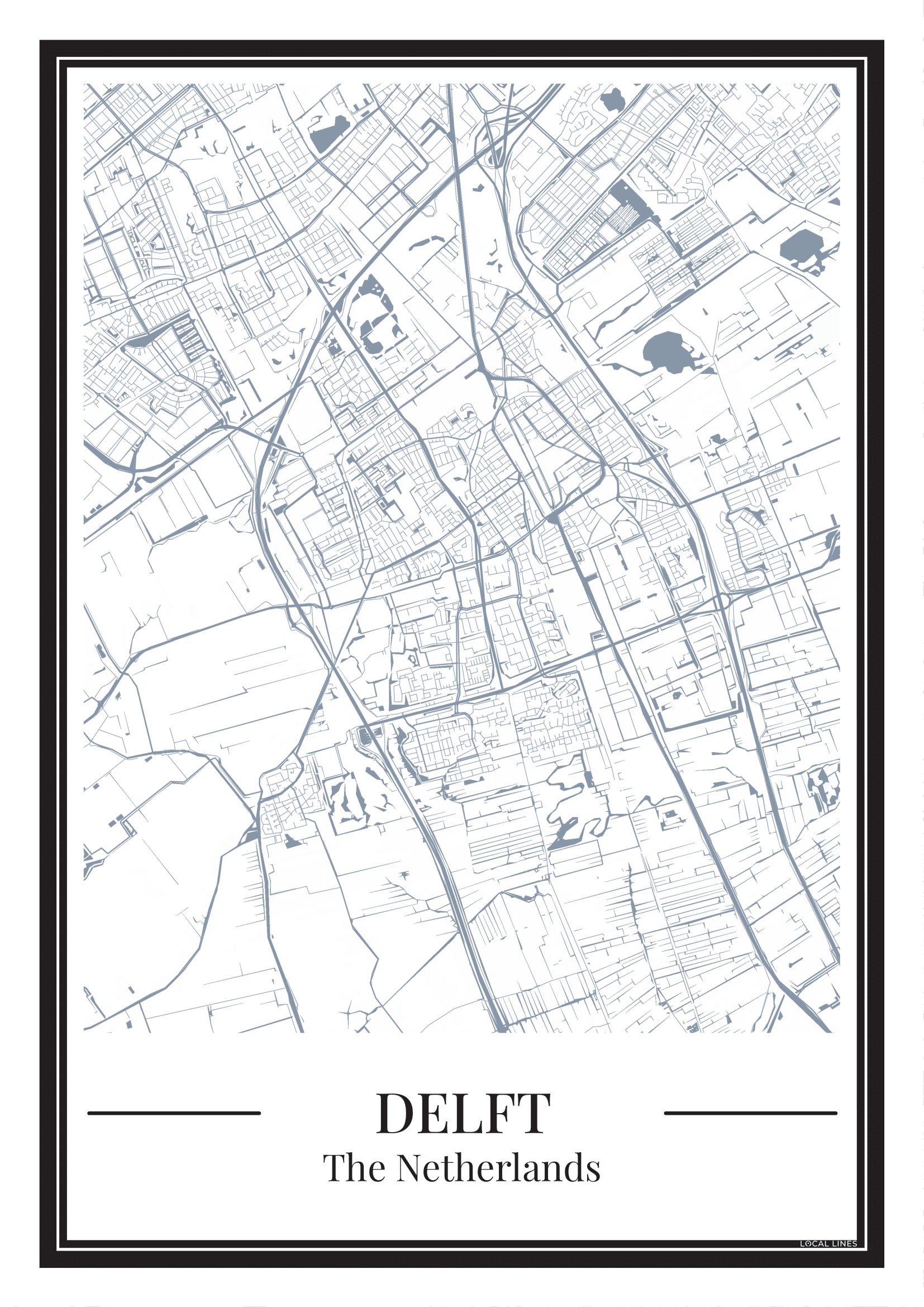 Delft stadskaart poster – Blauw