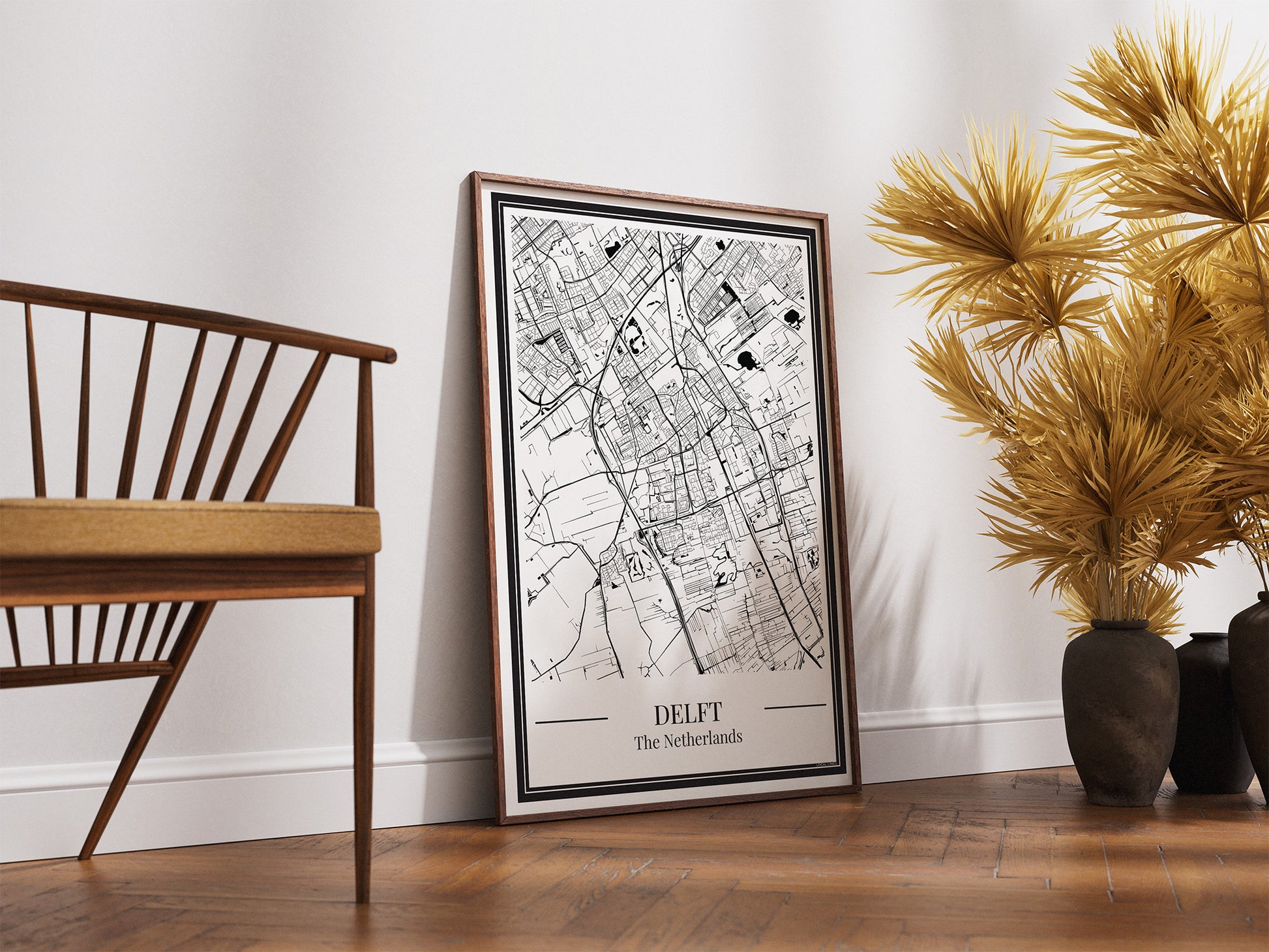 Geef je interieur een warme en stijlvolle uitstraling met deze Delft stadskaart poster in beige. De gedetailleerde kaart laat de straten en wijken van Delft duidelijk zien en maakt dit ontwerp een tijdloze toevoeging aan je wanddecoratie of een bijzonder cadeau voor elke gelegenheid.