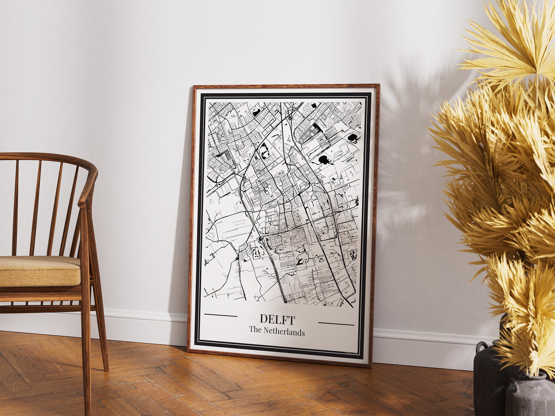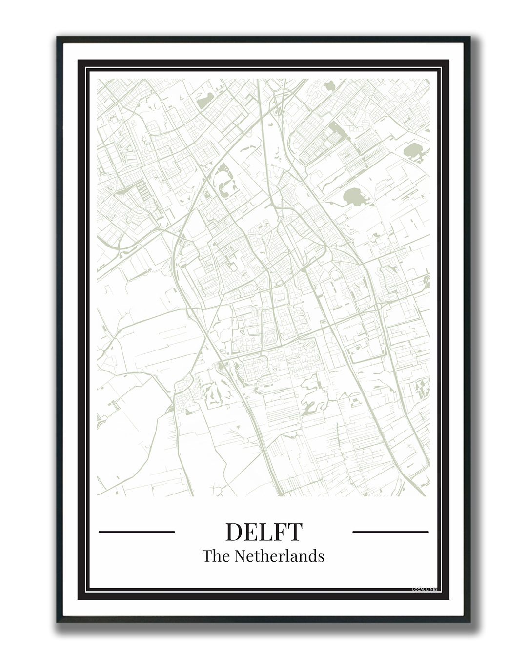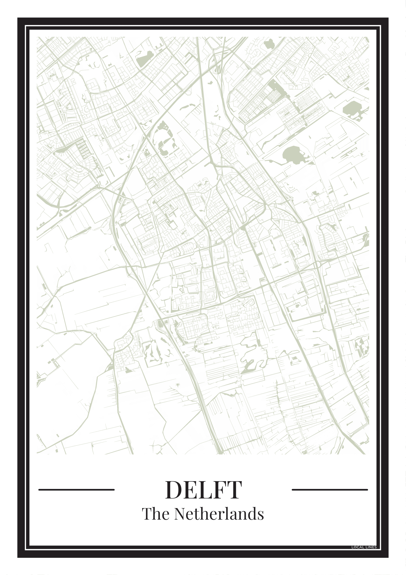 Breng Delft stijlvol in huis met deze stadskaart poster in groen. De gedetailleerde kaart toont de straten en wijken van Delft en maakt dit ontwerp een moderne toevoeging aan je wanddecoratie of een bijzonder cadeau.