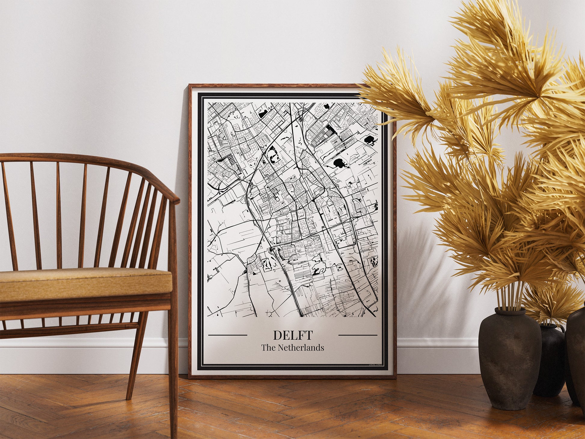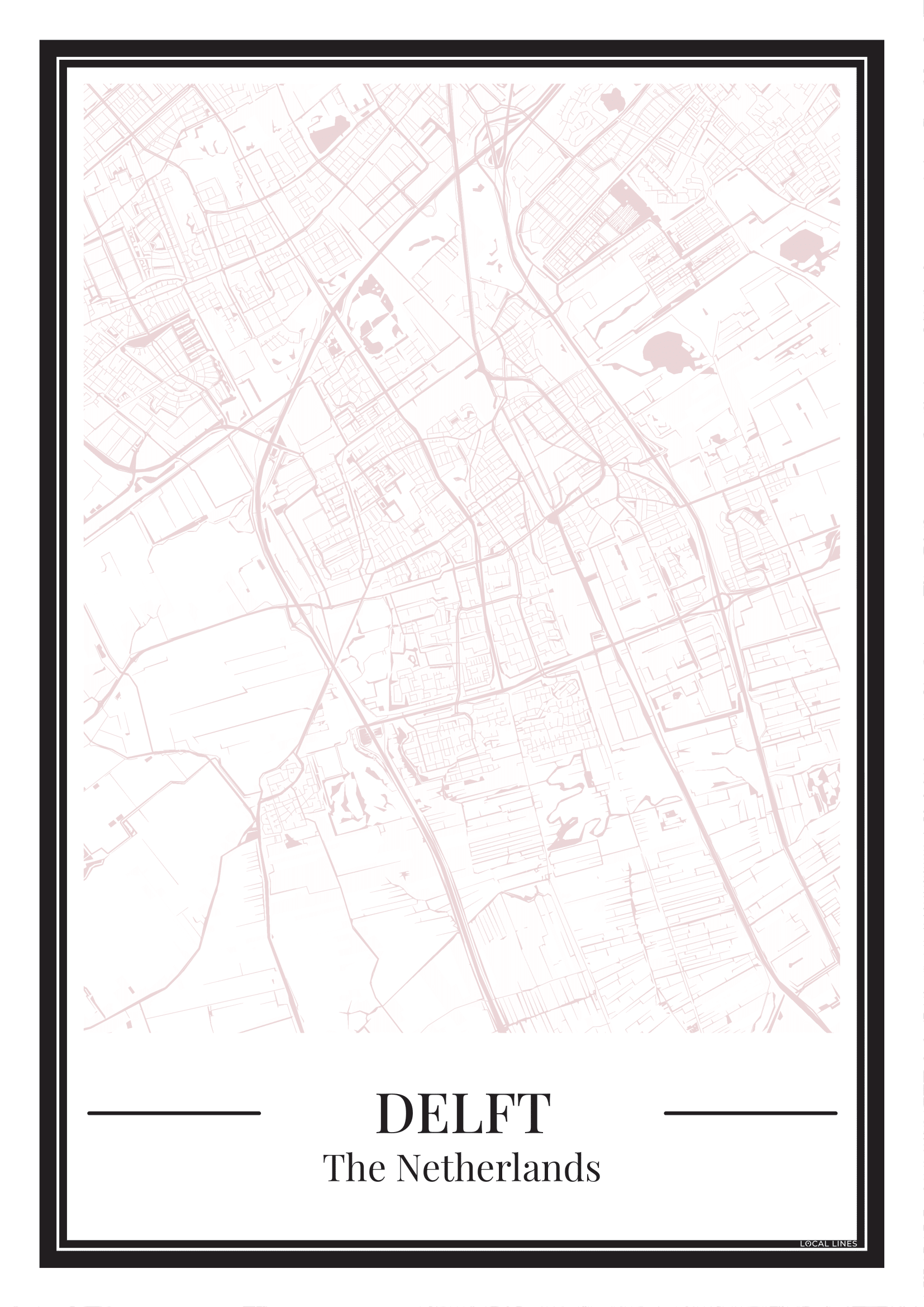 Breng Delft in huis met deze roze stadskaart. De gedetailleerde plattegrond van Delft maakt deze poster niet alleen geschikt als wanddecoratie, maar ook een origineel en persoonlijk cadeau.