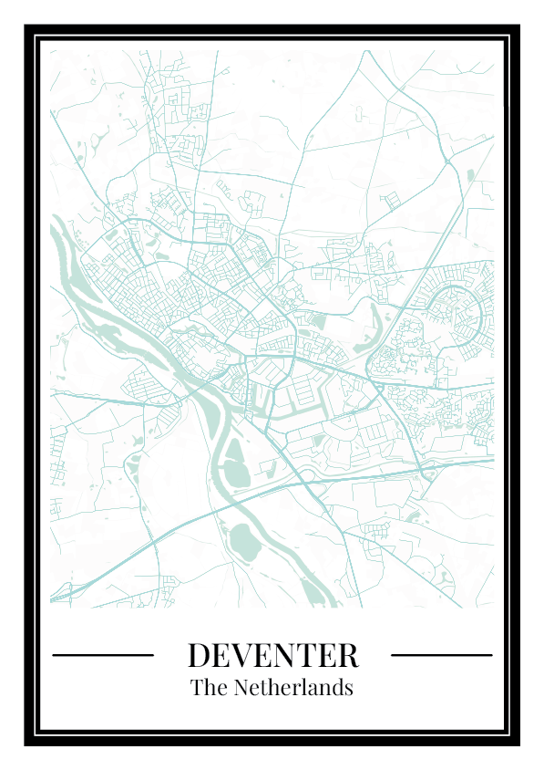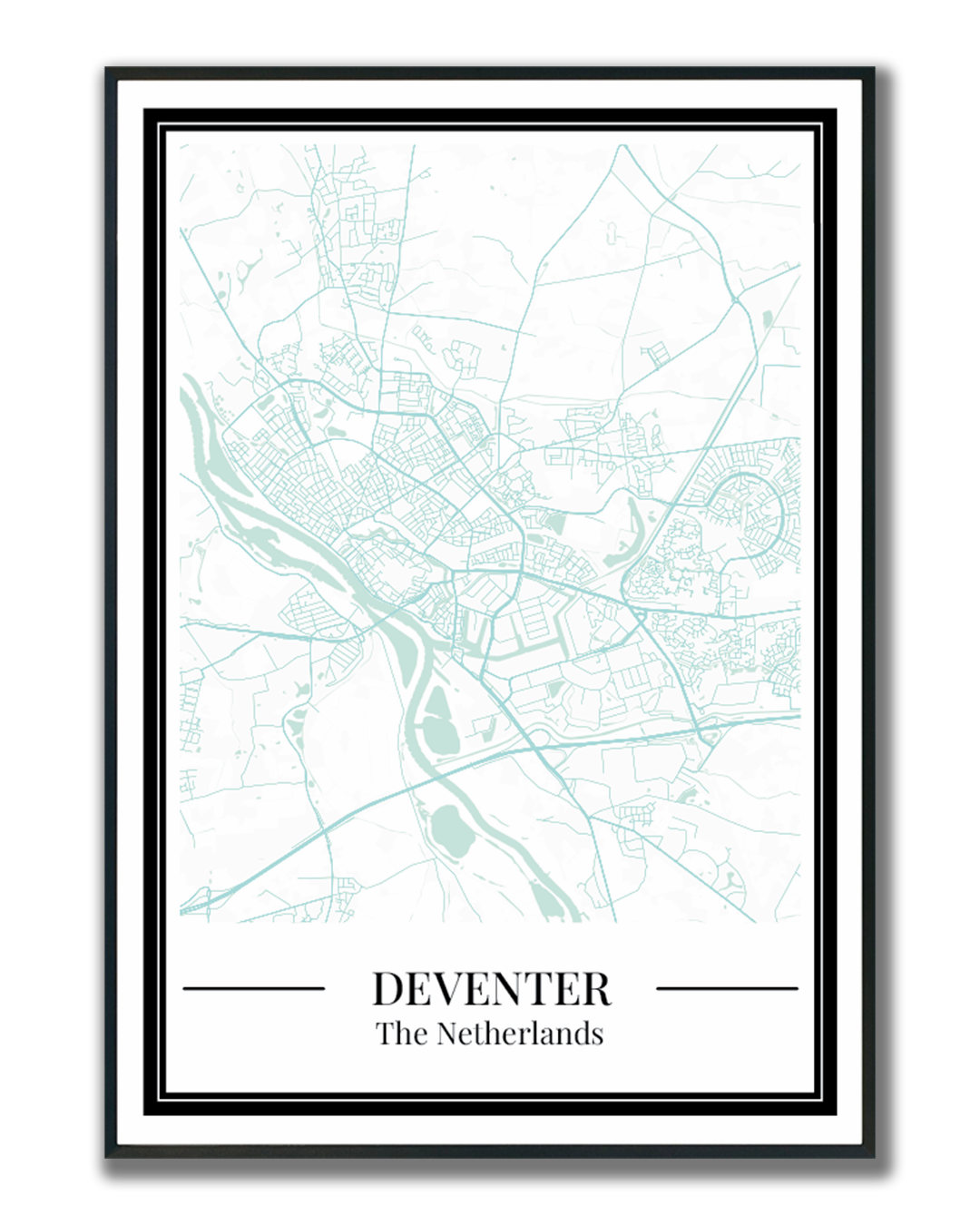 Breng een frisse en moderne sfeer in huis met deze poster van de Deventer stadskaart in lichtblauw. De gedetailleerde plattegrond toont de straten en wijken van Deventer op een stijlvolle manier, waardoor deze print een echte blikvanger is aan je muur. Perfect als persoonlijke wanddecoratie of als bijzonder cadeau voor een stadsliefhebber.