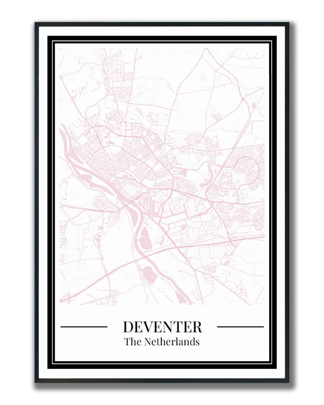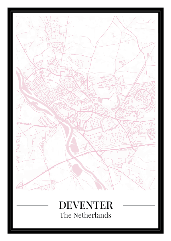 Breng Deventer in huis met deze roze stadskaart. De gedetailleerde plattegrond van Deventer maakt deze poster niet alleen geschikt als wanddecoratie, maar ook een origineel en persoonlijk cadeau.