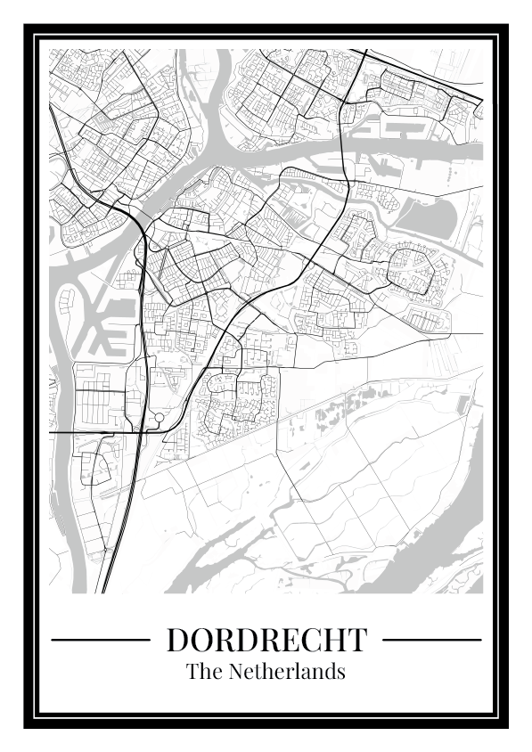 Een tijdloos eerbetoon aan Dordrecht. Deze klassieke stadskaart is een stijlvolle toevoeging aan je interieur of een bijzonder cadeau.