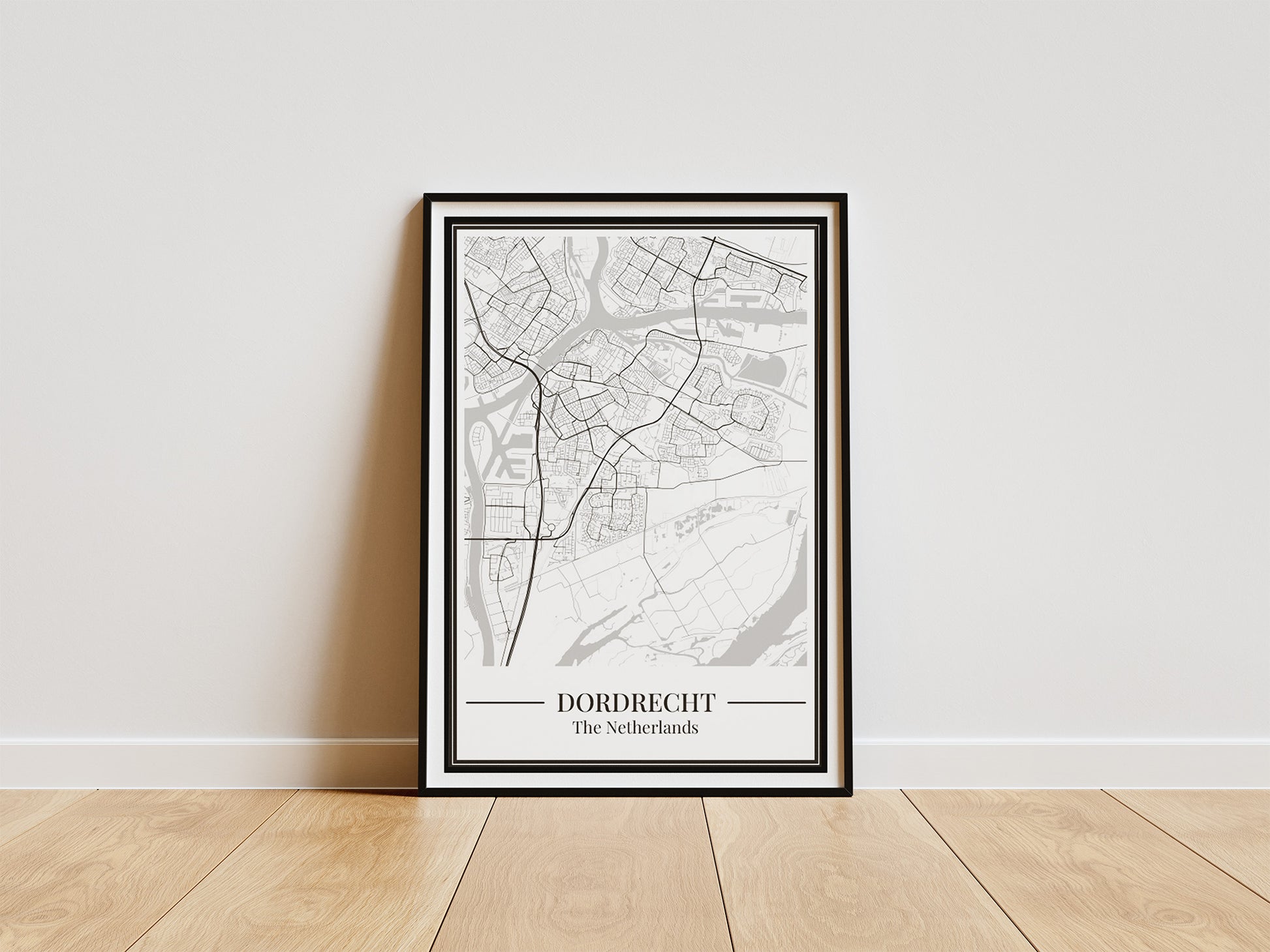 Breng een frisse en moderne sfeer in huis met deze poster van de Dordrecht stadskaart in lichtblauw. De gedetailleerde plattegrond toont de straten en wijken van Dordrecht op een stijlvolle manier, waardoor deze print een echte blikvanger is aan je muur. Perfect als persoonlijke wanddecoratie of als bijzonder cadeau voor een stadsliefhebber.