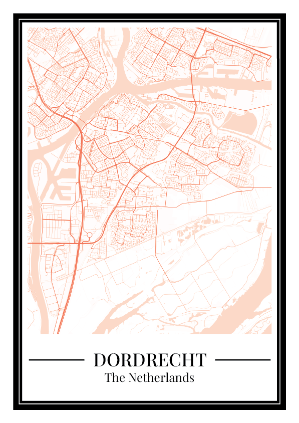Geef je interieur een warme en stijlvolle uitstraling met deze Dordrecht stadskaart poster in oranje. De gedetailleerde kaart laat de straten en wijken van Dordrecht duidelijk zien en maakt dit ontwerp een tijdloze toevoeging aan je wanddecoratie of een bijzonder cadeau voor elke gelegenheid.