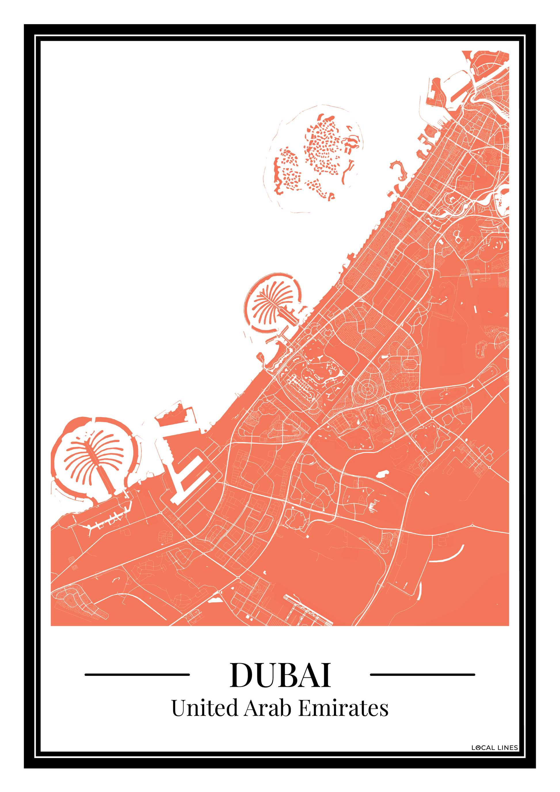 Geef je interieur een warme en stijlvolle uitstraling met deze Dubai stadskaart poster in oranje. De gedetailleerde kaart laat de straten en wijken van Dubai duidelijk zien en maakt dit ontwerp een tijdloze toevoeging aan je wanddecoratie of een bijzonder cadeau voor elke gelegenheid.