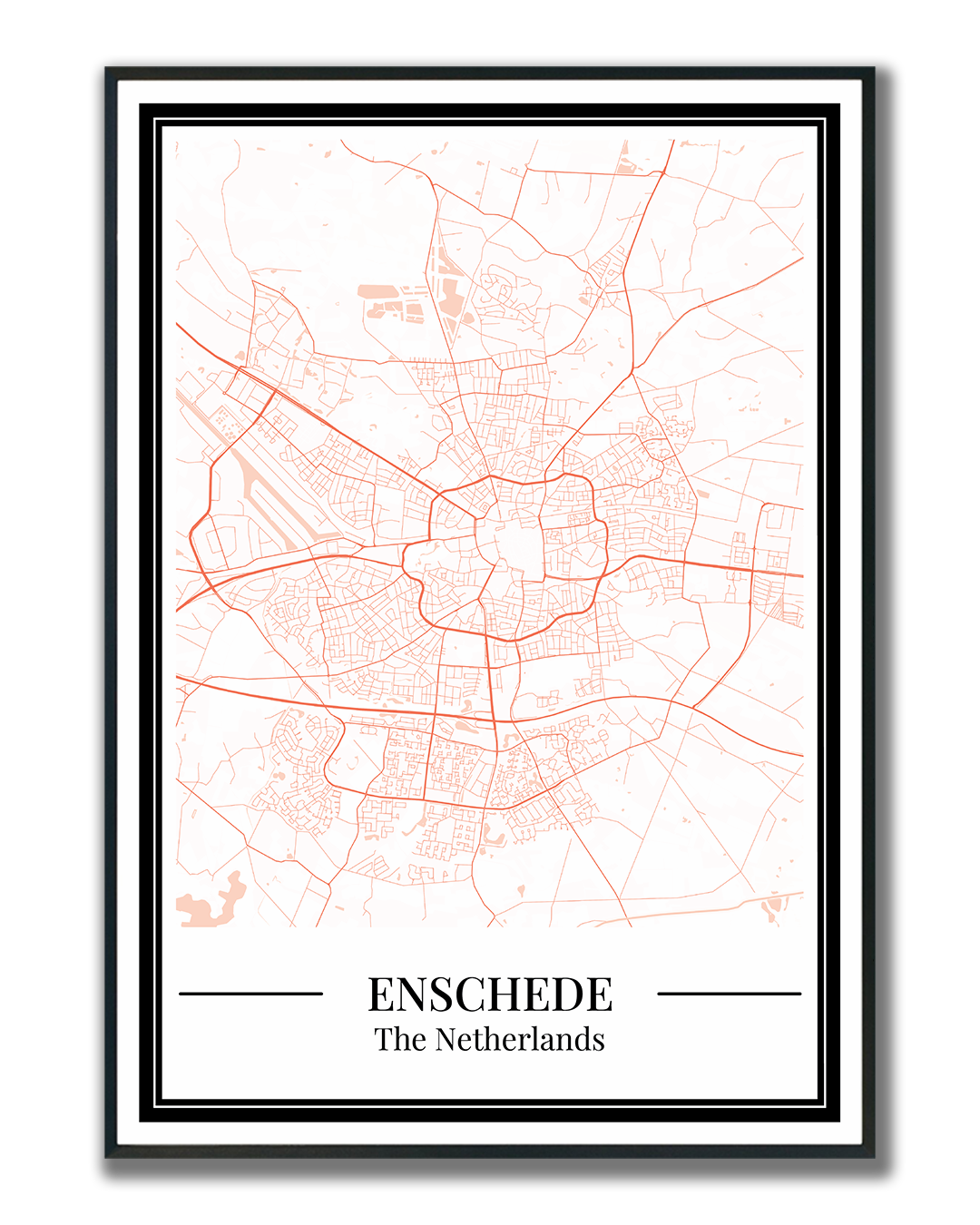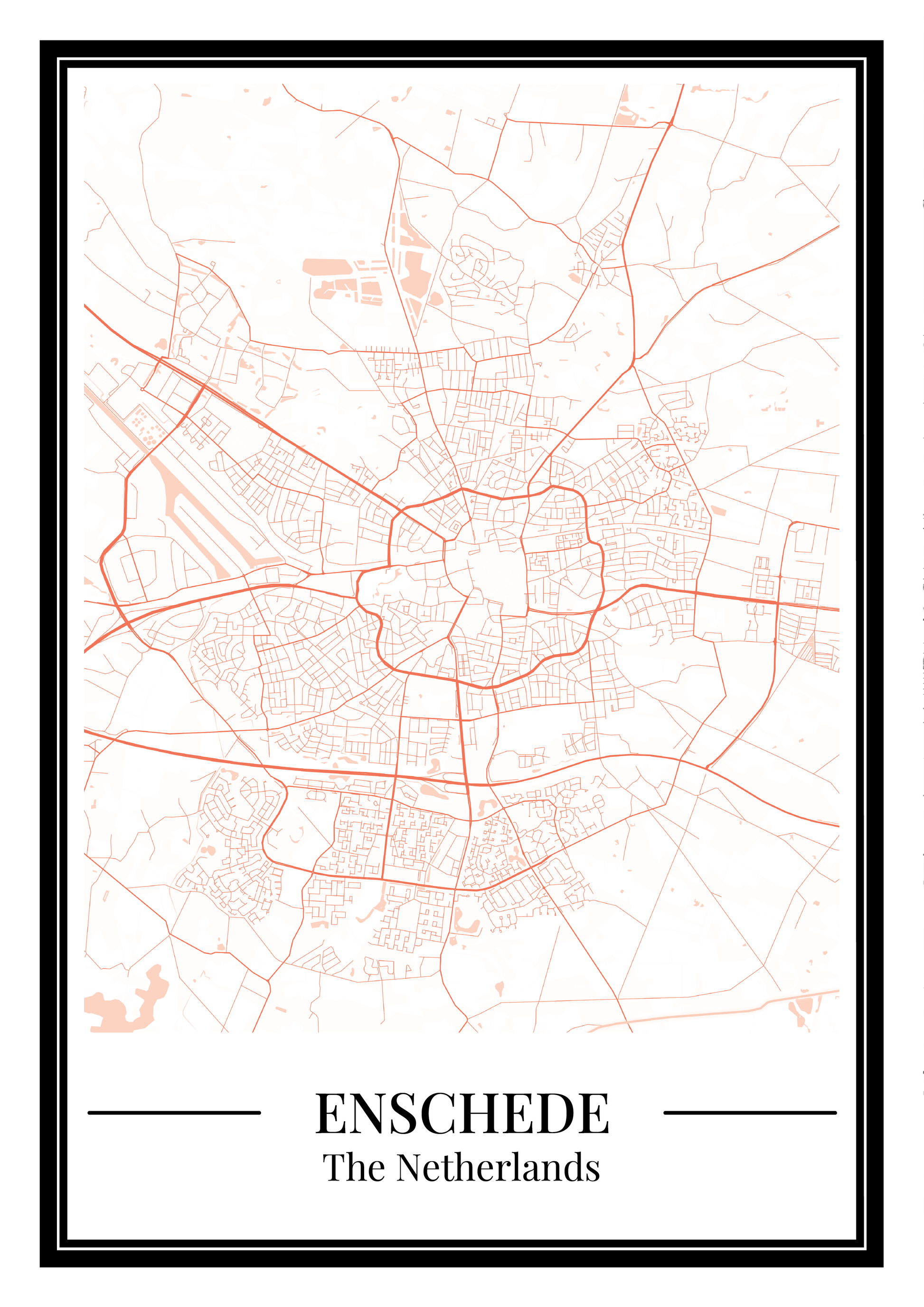 Geef je interieur een warme en stijlvolle uitstraling met deze Enschede stadskaart poster in oranje. De gedetailleerde kaart laat de straten en wijken van Enschede duidelijk zien en maakt dit ontwerp een tijdloze toevoeging aan je wanddecoratie of een bijzonder cadeau voor elke gelegenheid.