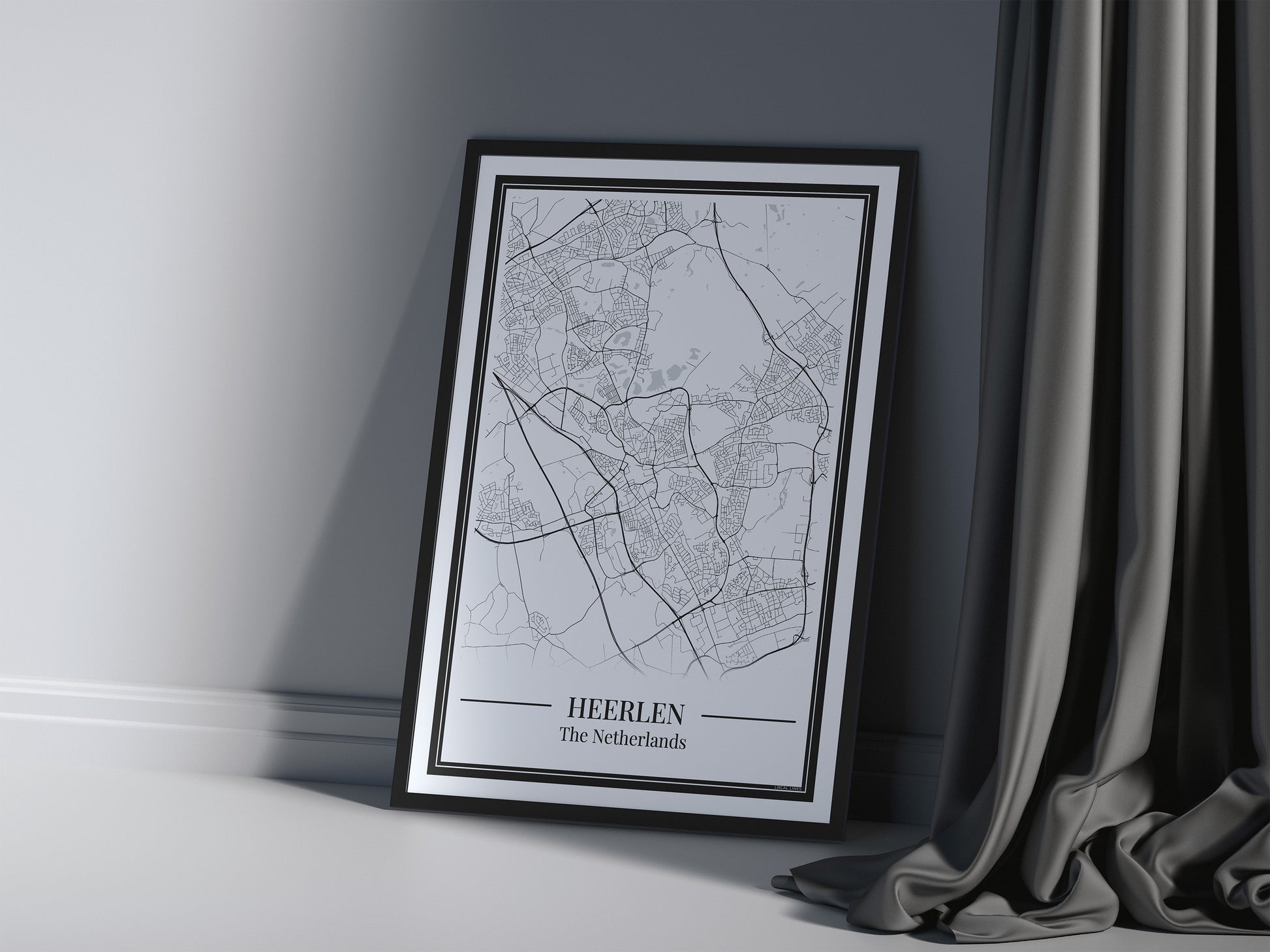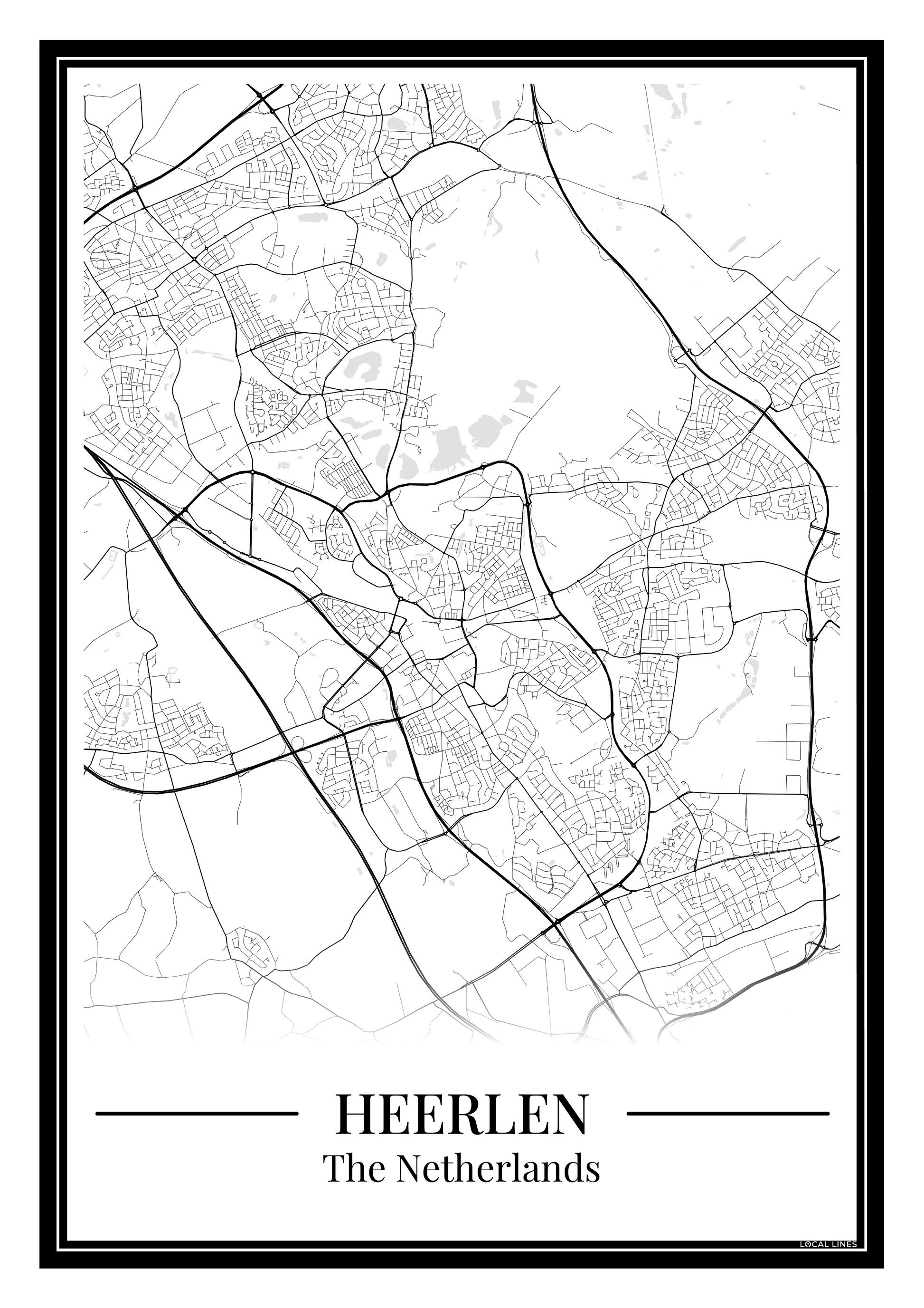 Geef je interieur een moderne en persoonlijke touch met deze Heerlen poster. De stadskaart toont alle straten en wijken en is ideaal als wanddecoratie of origineel cadeau.