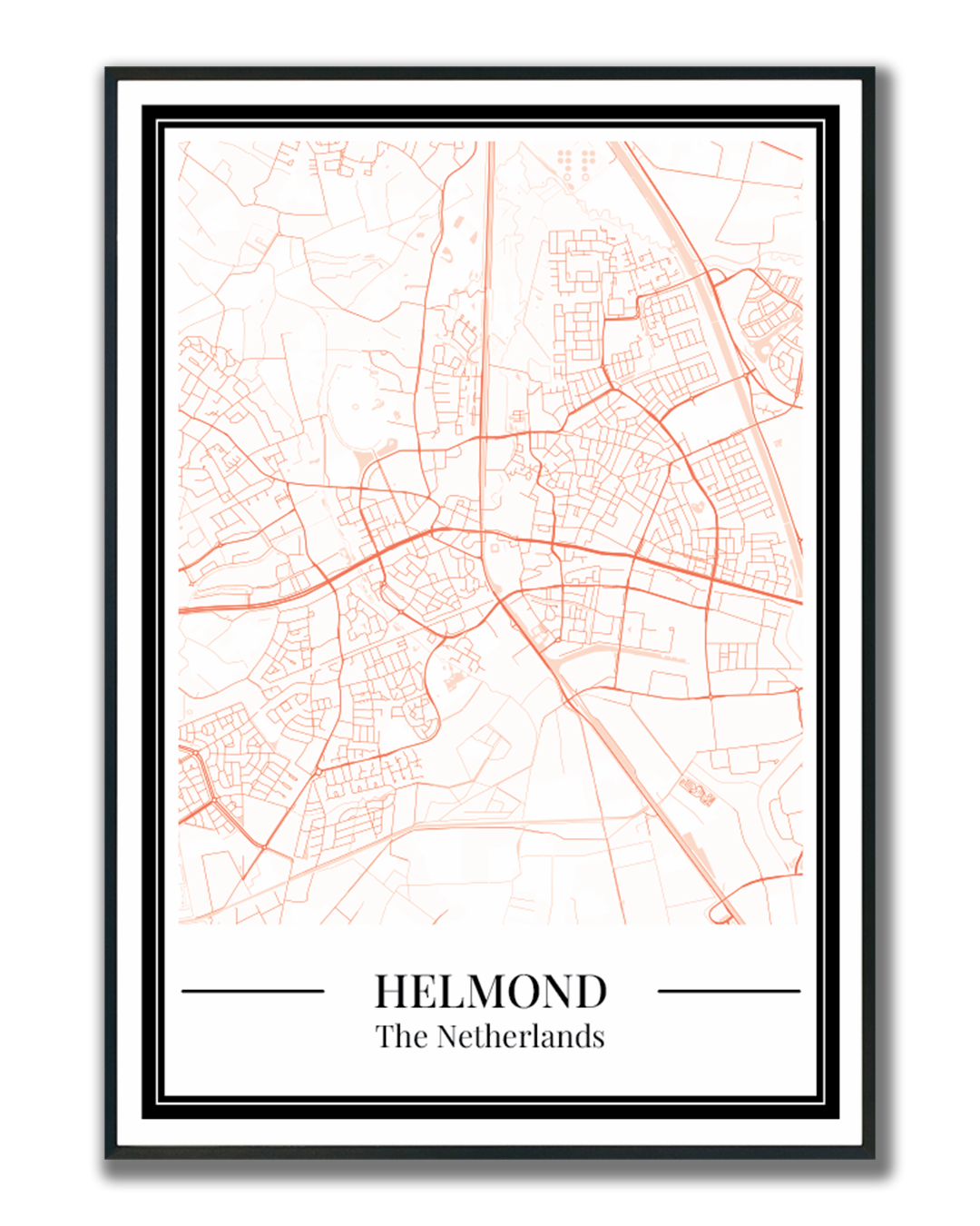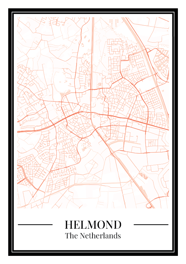 Geef je interieur een warme en stijlvolle uitstraling met deze Helmond stadskaart poster in oranje. De gedetailleerde kaart laat de straten en wijken van Helmond duidelijk zien en maakt dit ontwerp een tijdloze toevoeging aan je wanddecoratie of een bijzonder cadeau voor elke gelegenheid.
