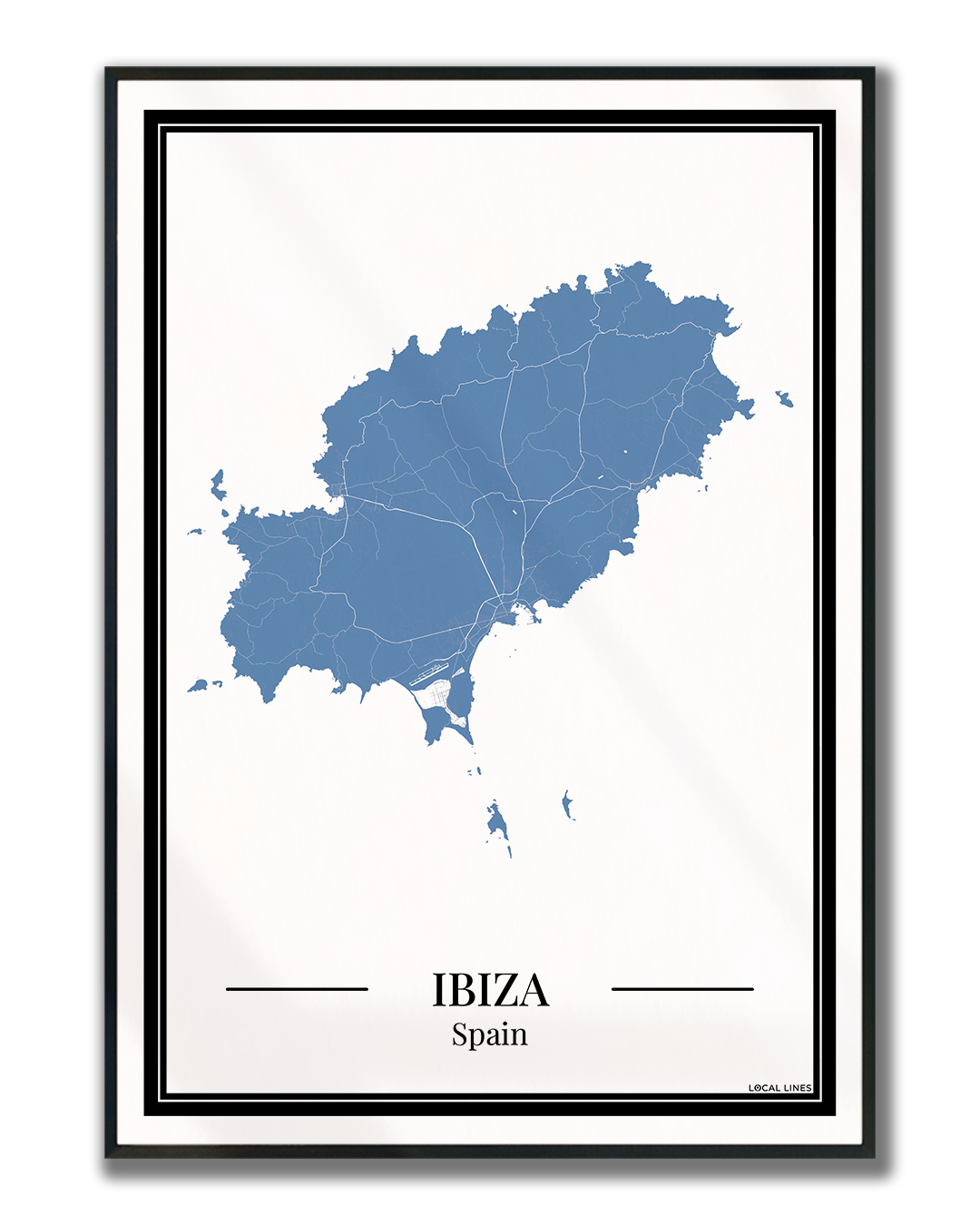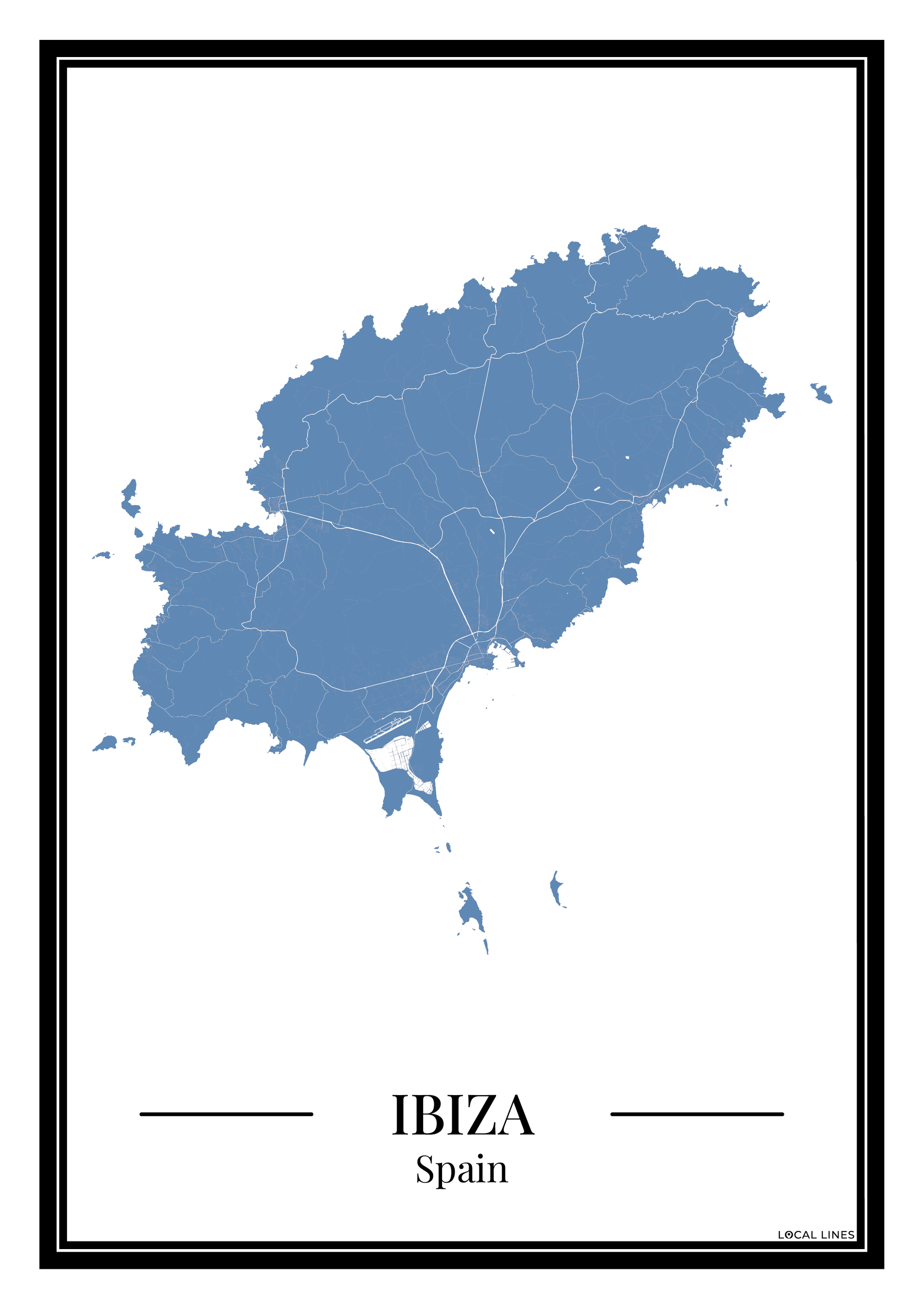 Ontdek de stad op een unieke manier met deze Ibiza eilandkaart poster in blauw. De gedetailleerde plattegrond van Ibiza laat de straten en plaatsen duidelijk zien en maakt deze print een echte blikvanger voor aan de muur.
