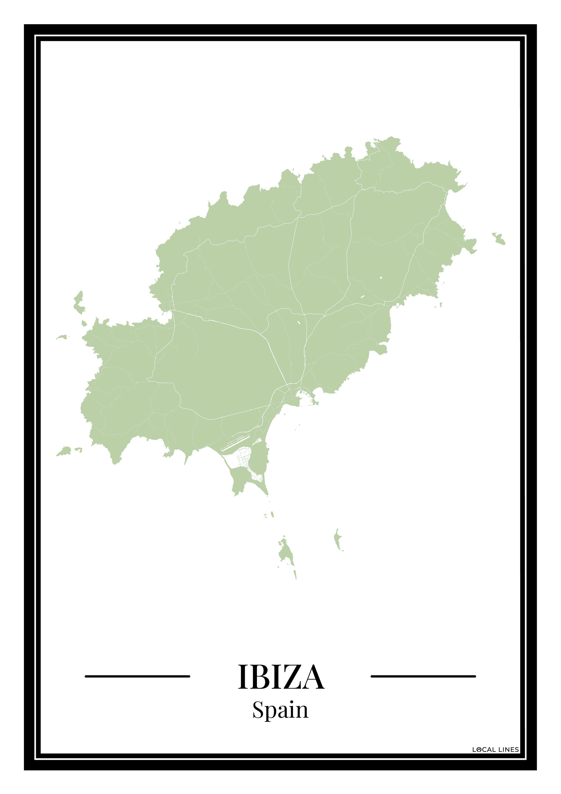 Ibiza Eilandkaart Poster - Groen