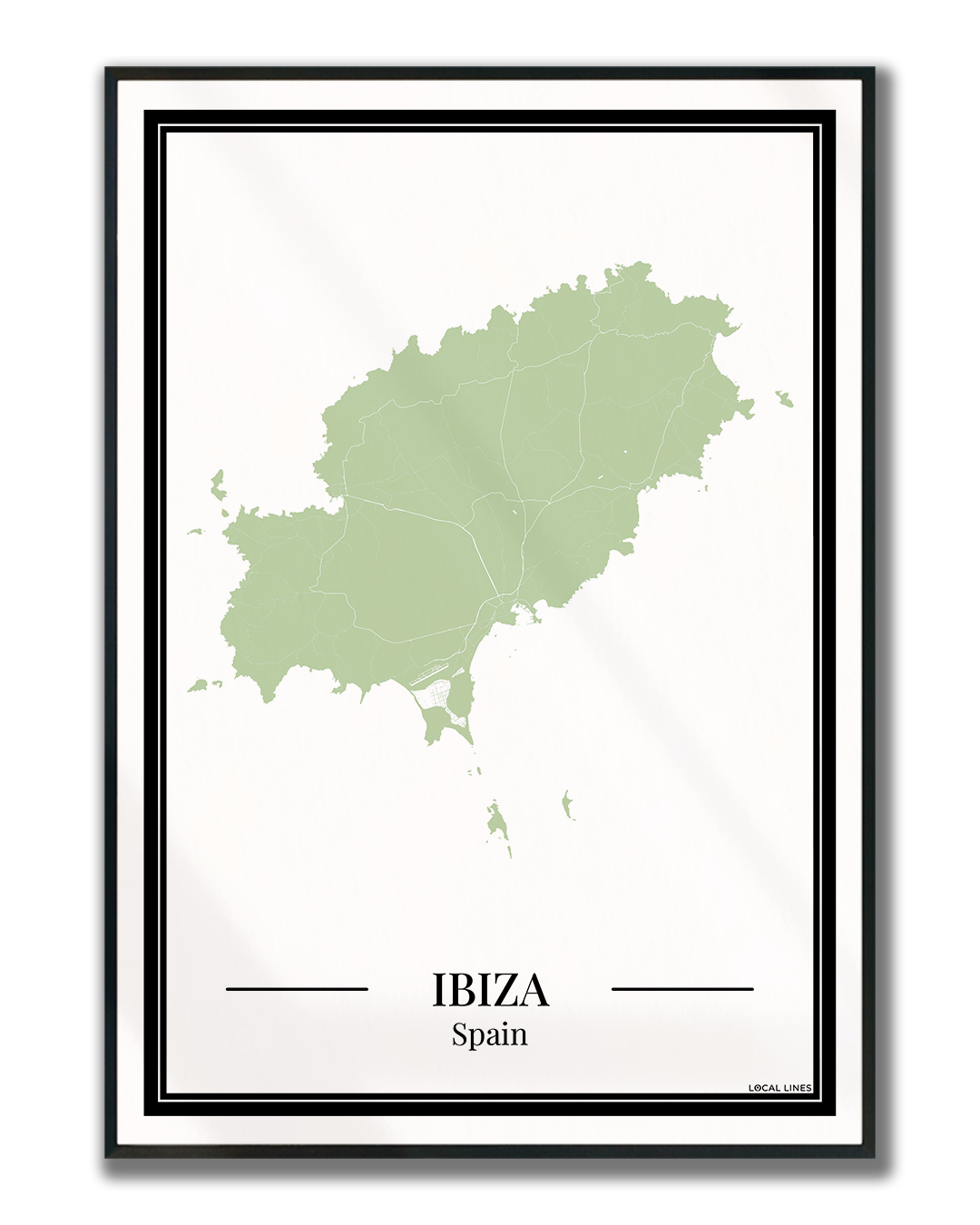 Ontdek Ibiza op een unieke manier met deze groene eilandposter. De gedetailleerde plattegrond laat straten en plaatsen duidelijk zien en maakt deze print een echte blikvanger voor aan de muur. Perfect als wanddecoratie of origineel cadeau.
