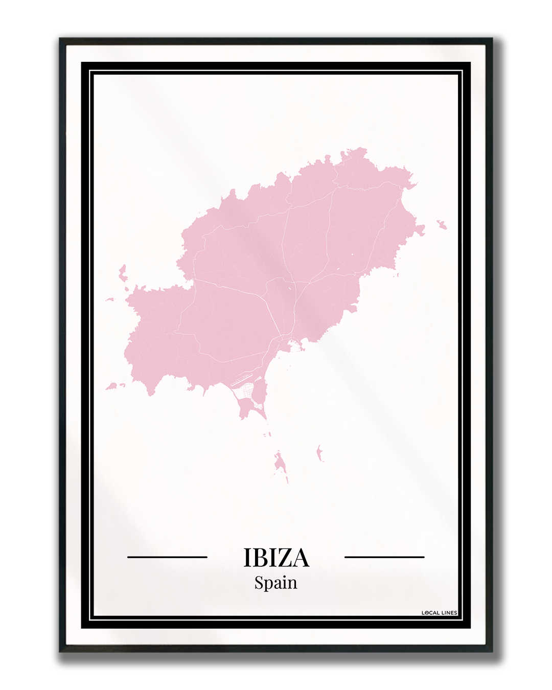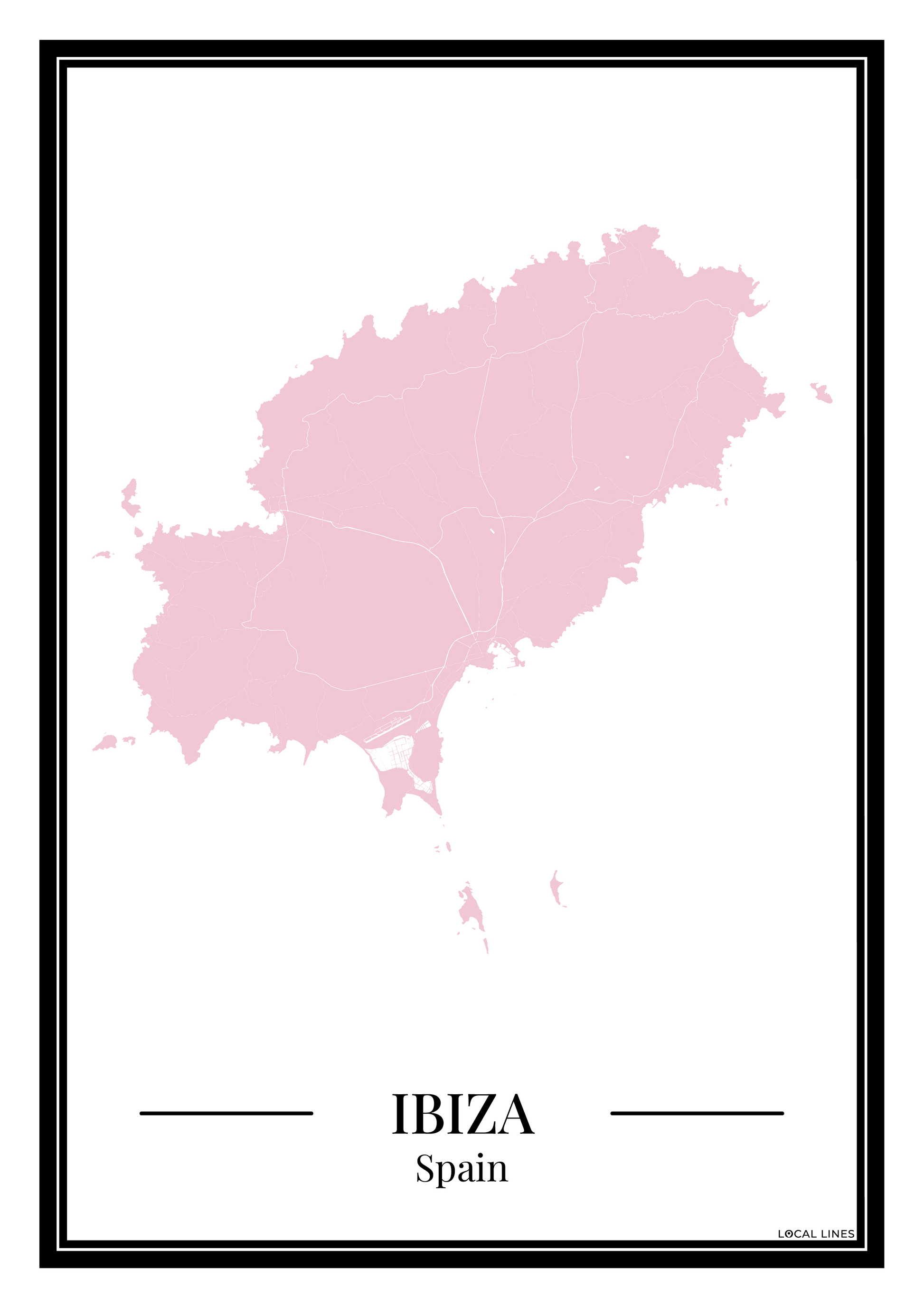 Breng Ibiza in huis met deze roze eilandskaart. De gedetailleerde plattegrond van Ibiza maakt deze poster niet alleen geschikt als wanddecoratie, maar ook een origineel en persoonlijk cadeau.
