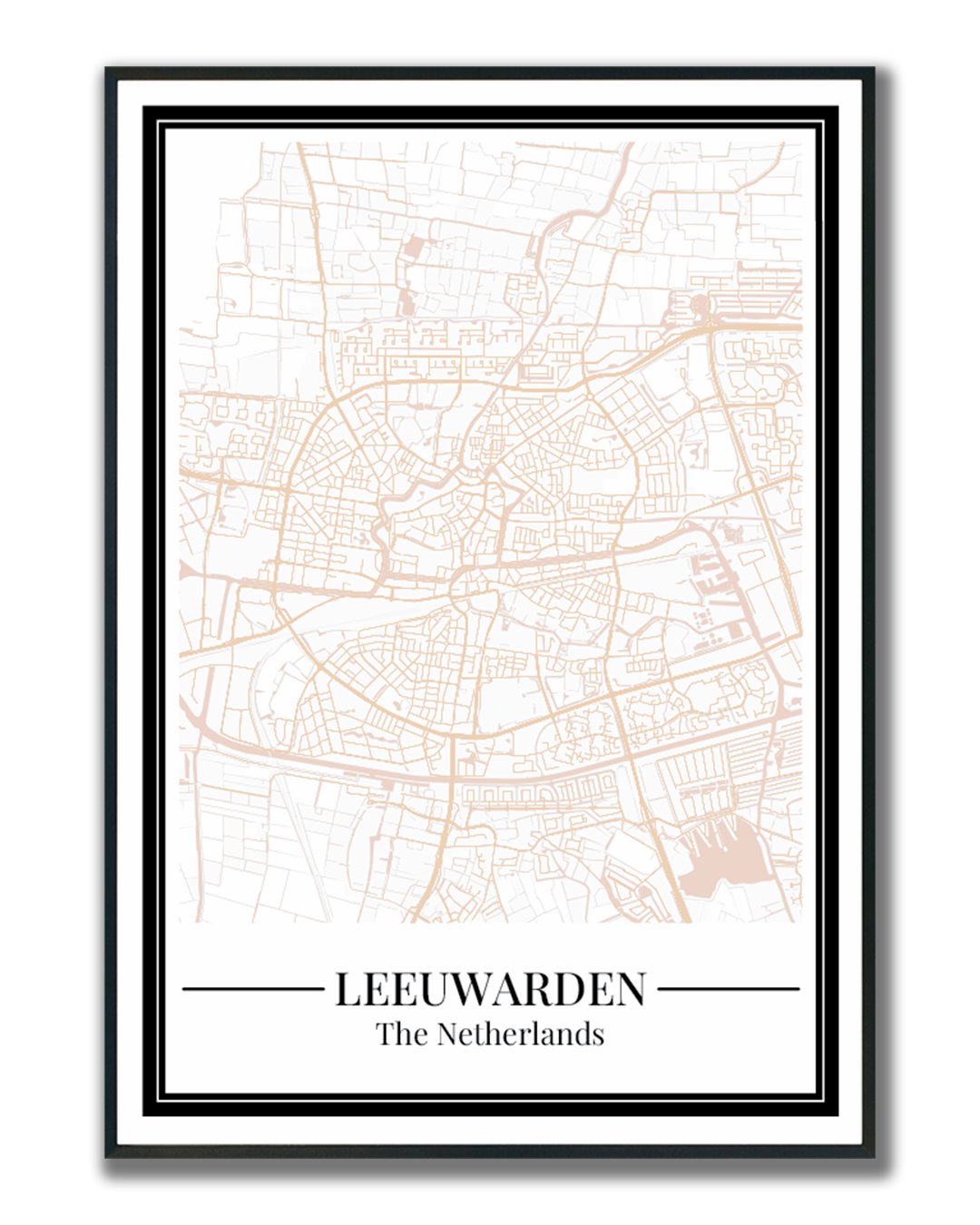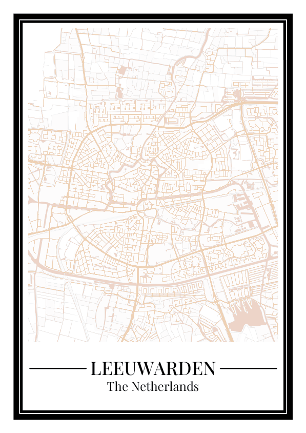 Geef je interieur een warme en stijlvolle uitstraling met deze Leeuwarden stadskaart poster in beige. De gedetailleerde kaart laat de straten en wijken van Leeuwarden duidelijk zien en maakt dit ontwerp een tijdloze toevoeging aan je wanddecoratie of een bijzonder cadeau voor elke gelegenheid.