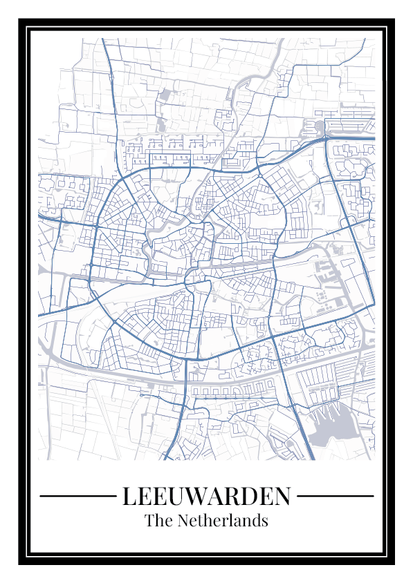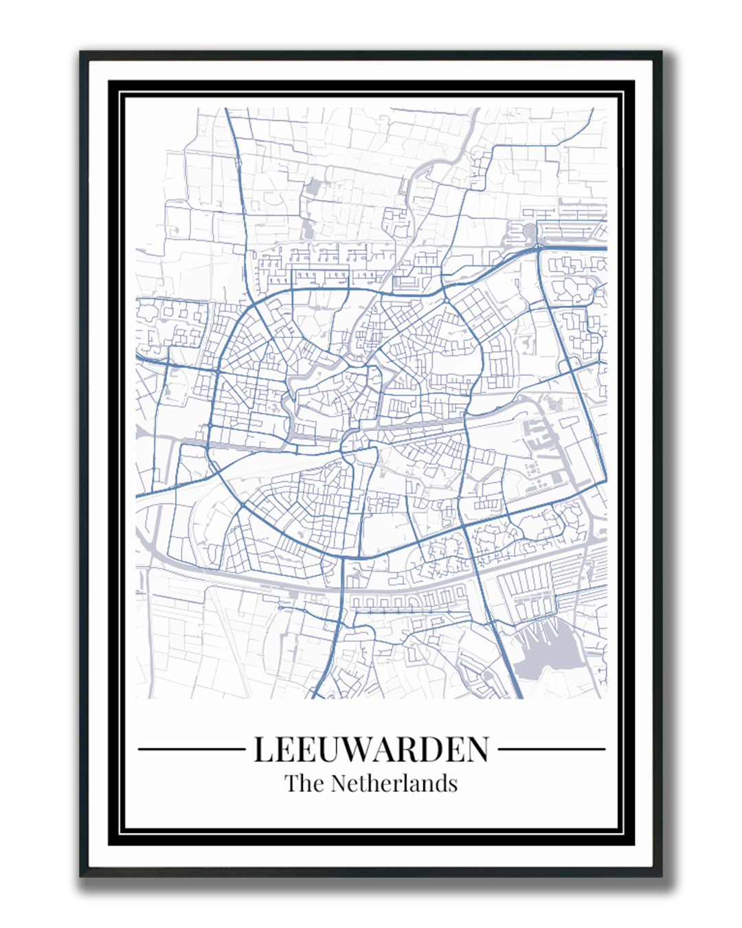 Ontdek de stad op een unieke manier met deze Leeuwarden stadskaart poster in blauw. De gedetailleerde plattegrond van Leeuwarden laat de straten en wijken duidelijk zien en maakt deze print een echte blikvanger voor aan de muur.