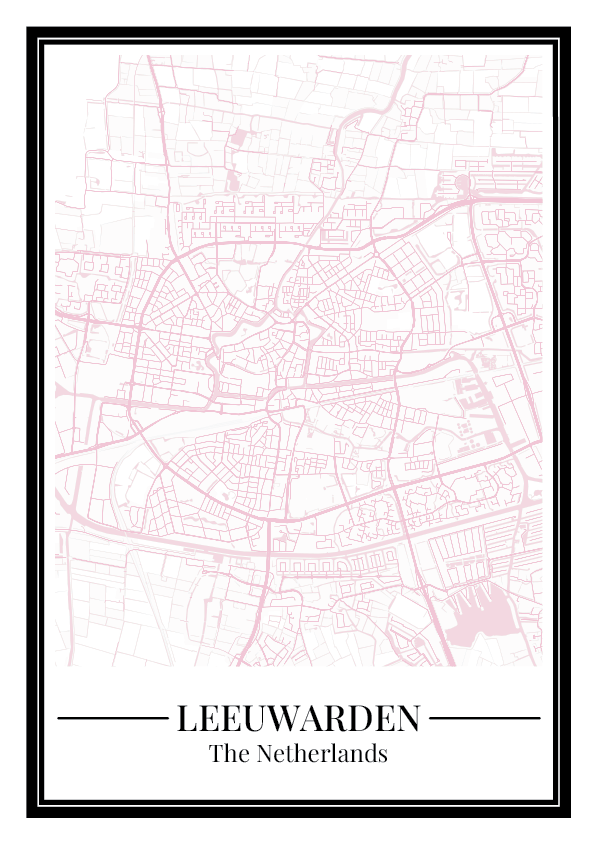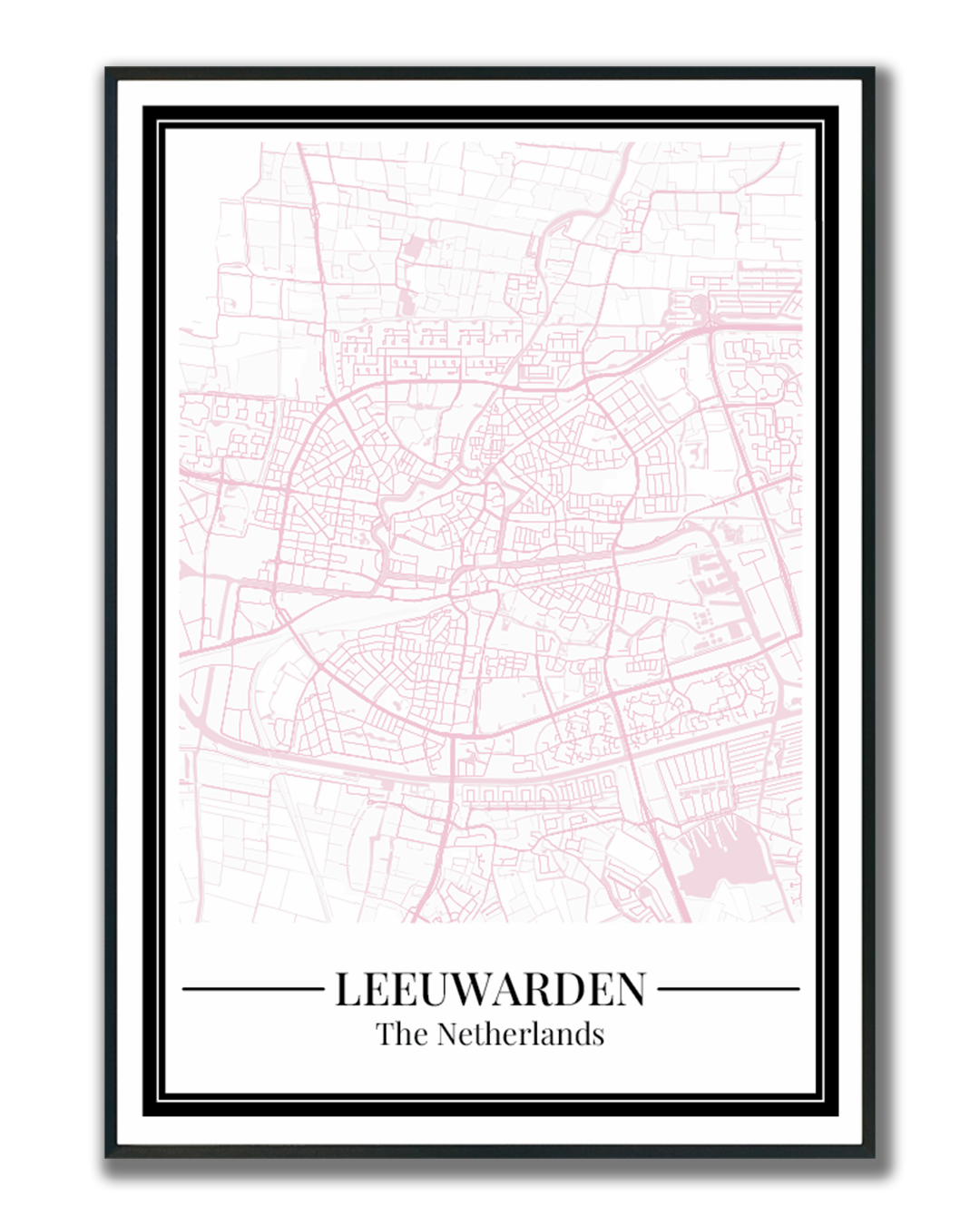 Breng Leeuwarden in huis met deze roze stadskaart. De gedetailleerde plattegrond van Leeuwarden maakt deze poster niet alleen geschikt als wanddecoratie, maar ook een origineel en persoonlijk cadeau.