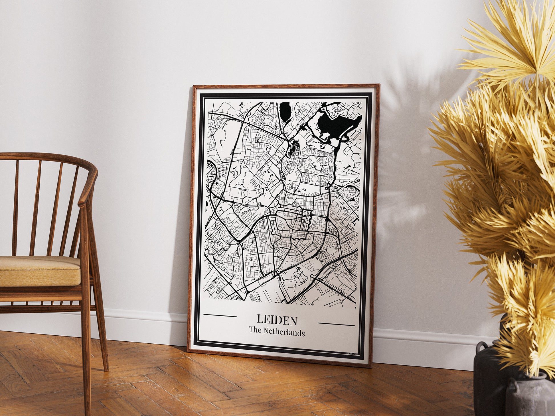 Geef je interieur een warme en stijlvolle uitstraling met deze Leiden stadskaart poster in beige. De gedetailleerde kaart laat de straten en wijken van Leiden duidelijk zien en maakt dit ontwerp een tijdloze toevoeging aan je wanddecoratie of een bijzonder cadeau voor elke gelegenheid.