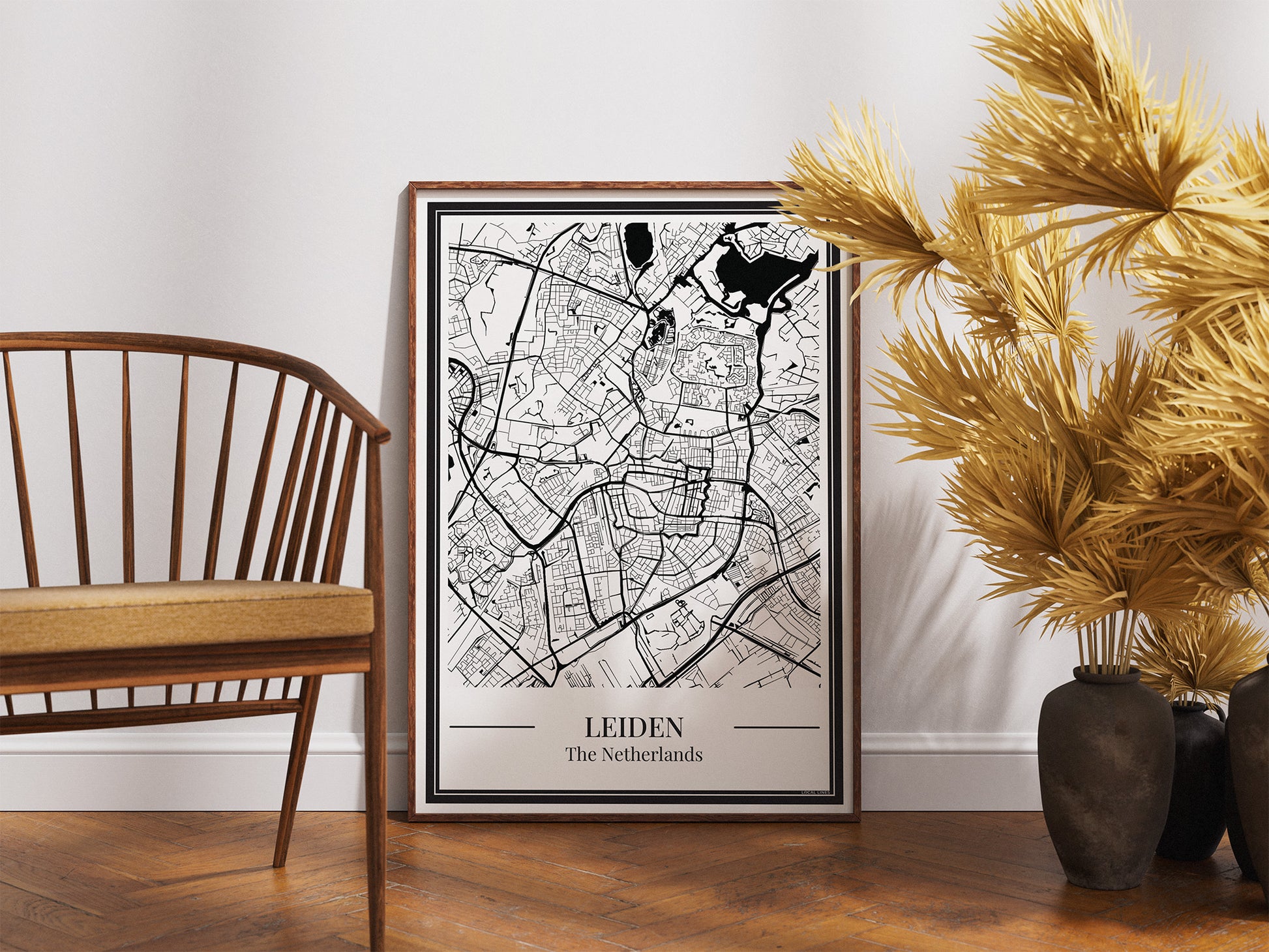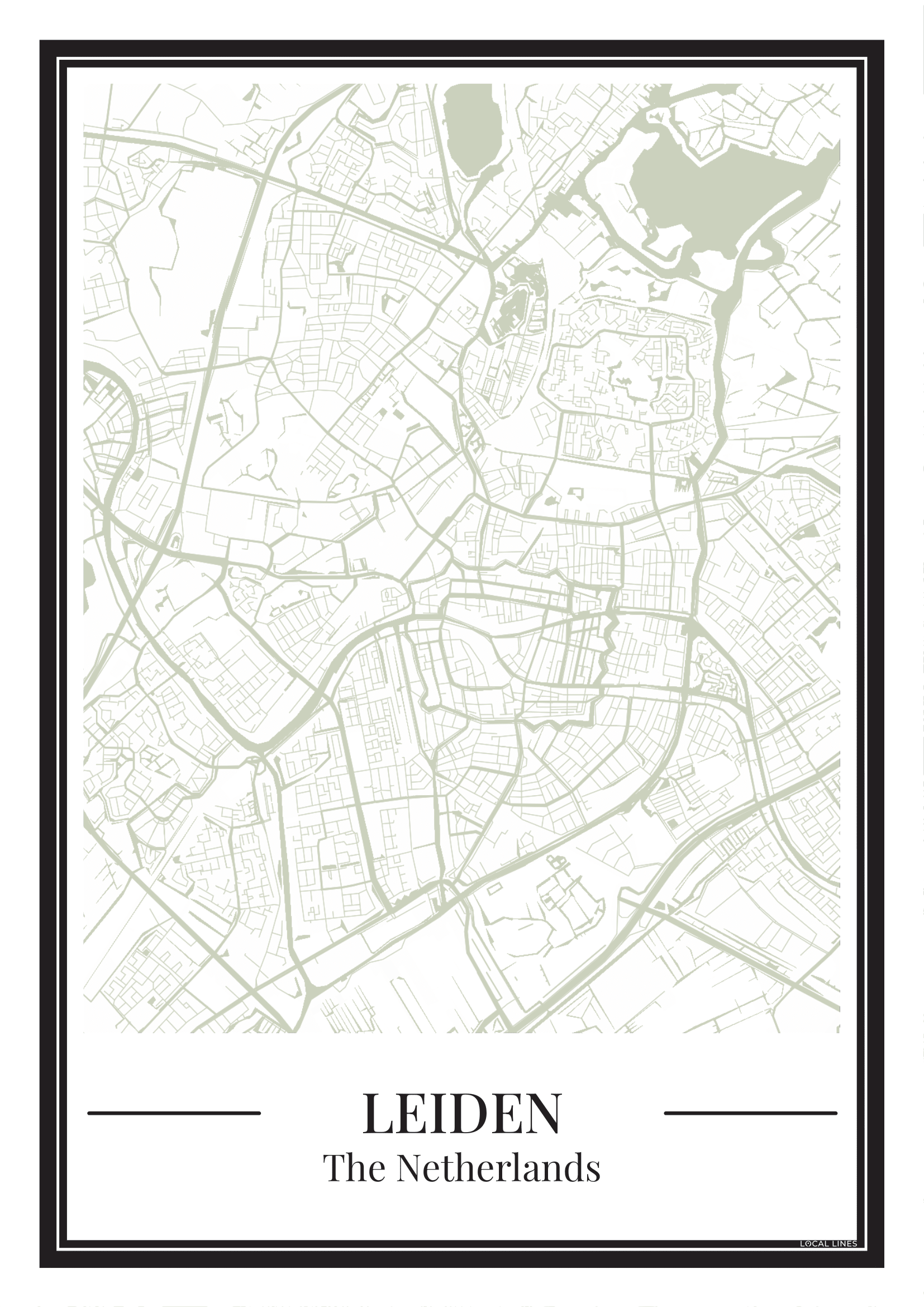 Breng Leiden stijlvol in huis met deze stadskaart poster in groen. De gedetailleerde kaart toont de straten en wijken van Leiden en maakt dit ontwerp een moderne toevoeging aan je wanddecoratie of een bijzonder cadeau.