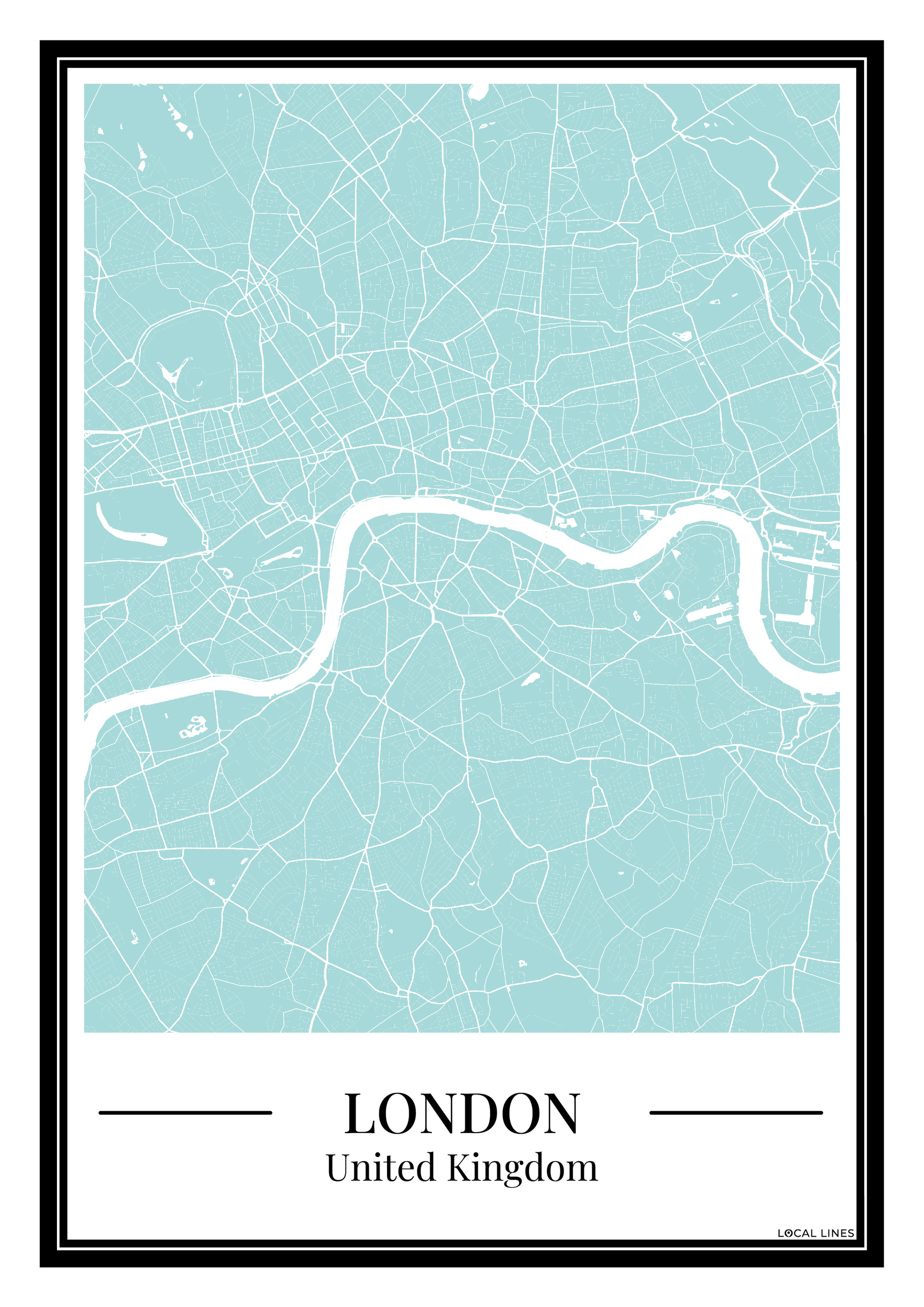 Breng een frisse en moderne sfeer in huis met deze poster van de London stadskaart in lichtblauw. De gedetailleerde plattegrond toont de straten en wijken van London op een stijlvolle manier, waardoor deze print een echte blikvanger is aan je muur. Perfect als persoonlijke wanddecoratie of als bijzonder cadeau voor een stadsliefhebber.