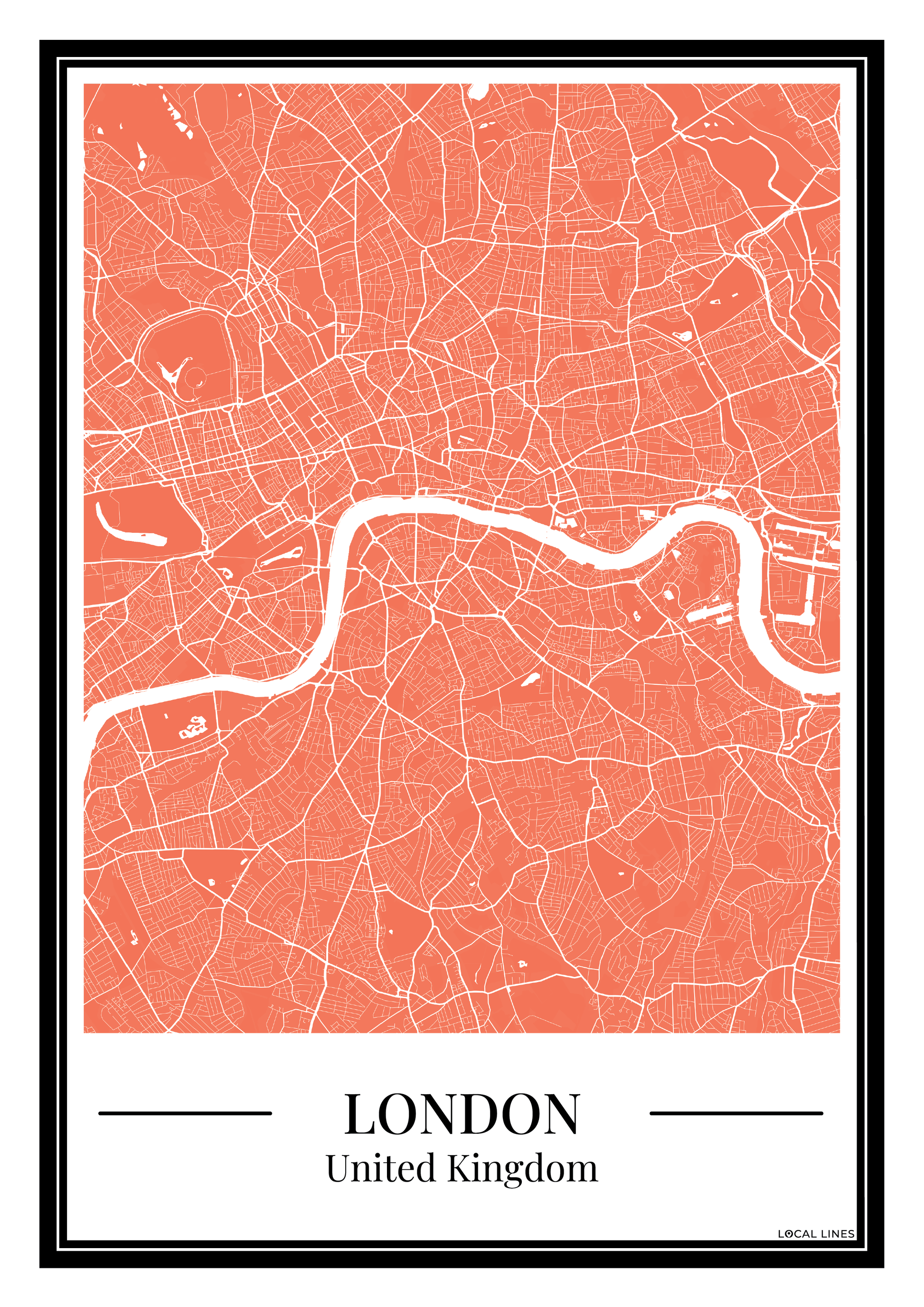 Geef je interieur een warme en stijlvolle uitstraling met deze London stadskaart poster in oranje. De gedetailleerde kaart laat de straten en wijken van London duidelijk zien en maakt dit ontwerp een tijdloze toevoeging aan je wanddecoratie of een bijzonder cadeau voor elke gelegenheid.