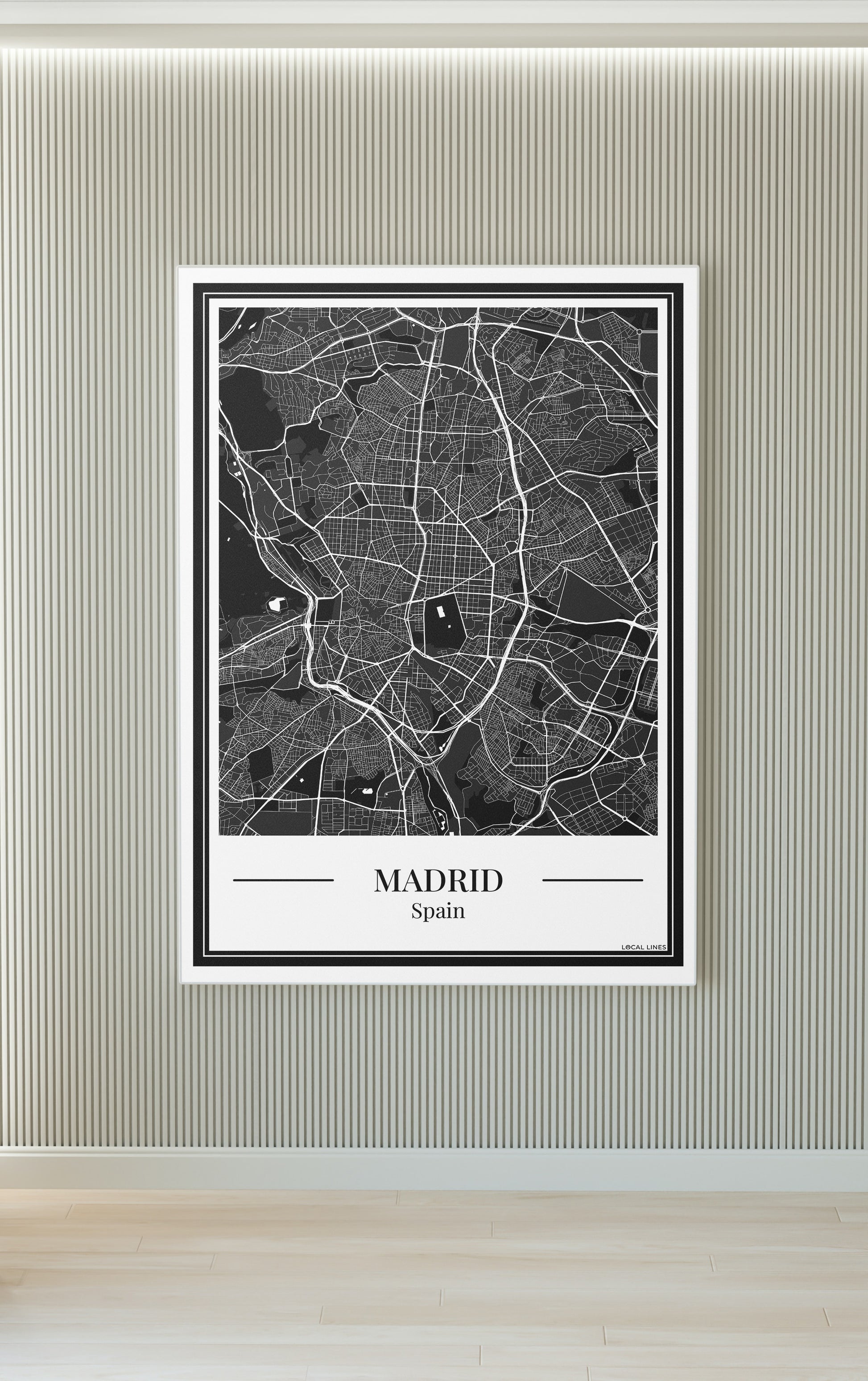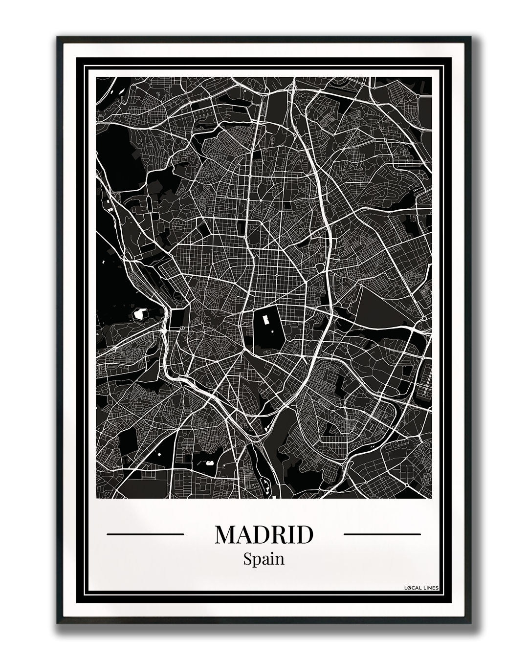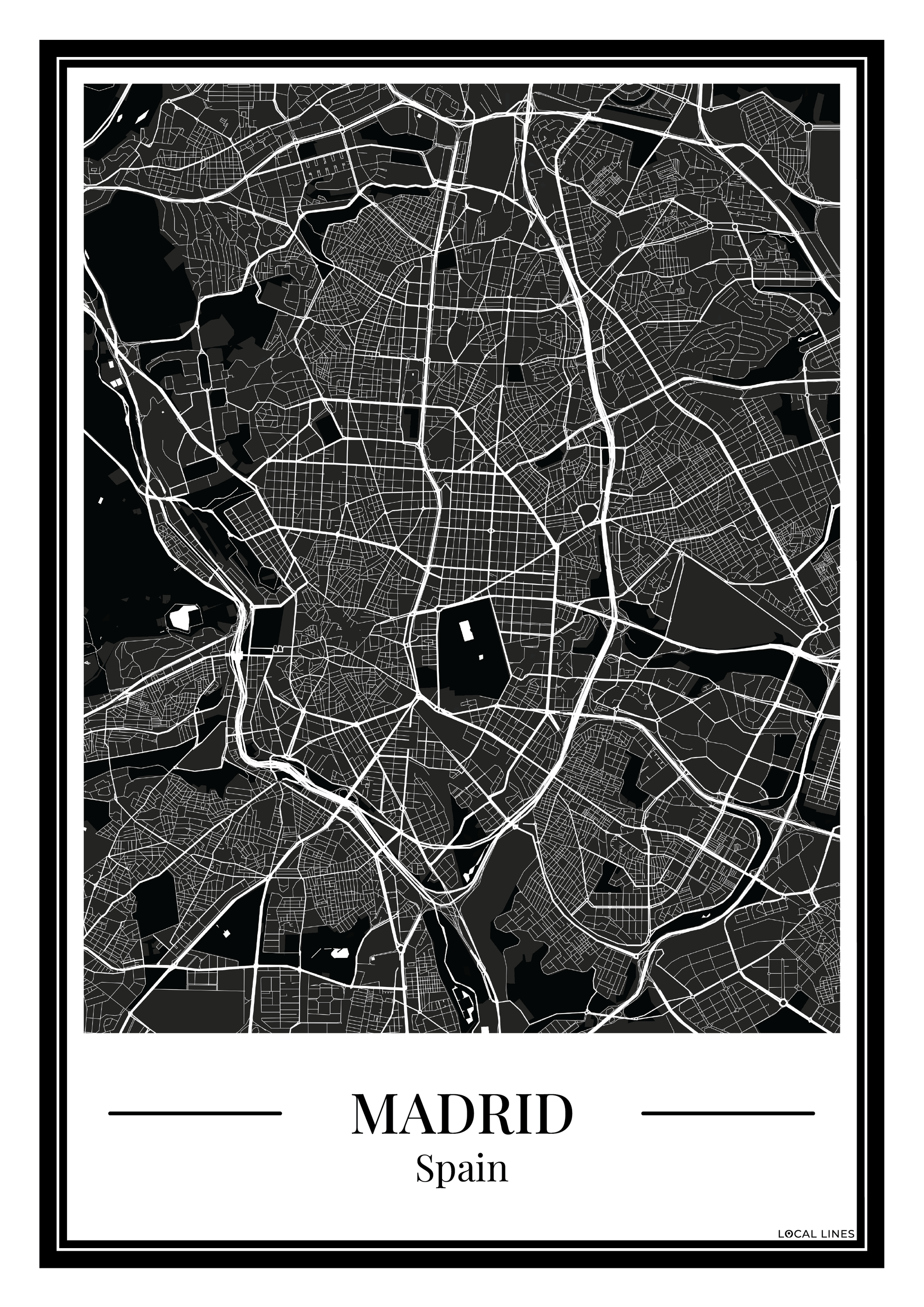 Geef je interieur een moderne en persoonlijke touch met deze Madrid poster. De stadskaart toont alle straten en wijken en is ideaal als wanddecoratie of origineel cadeau.