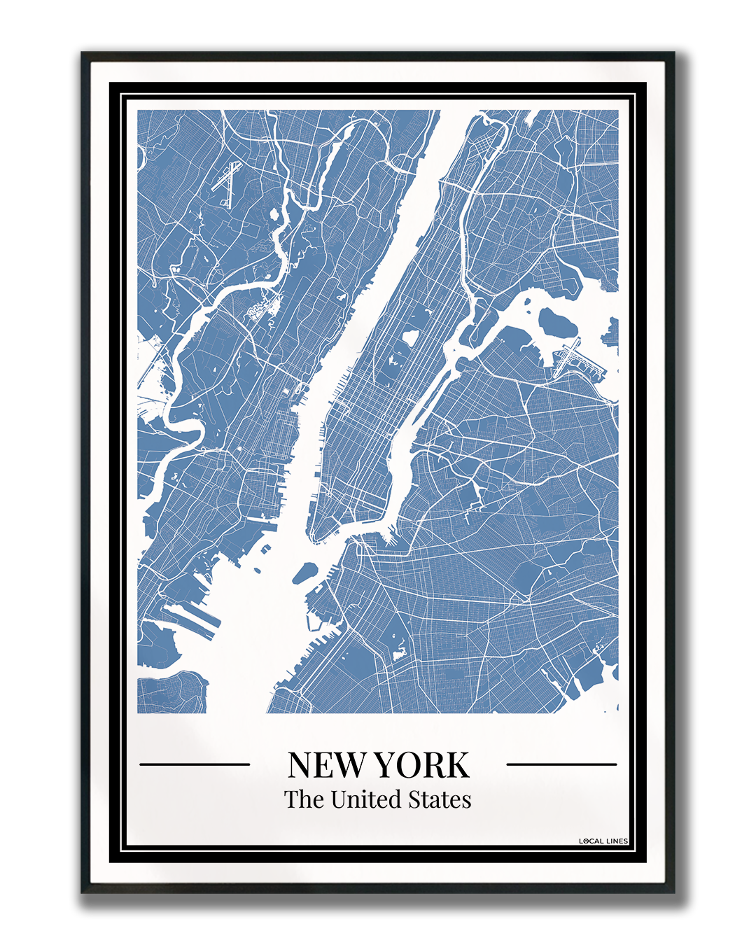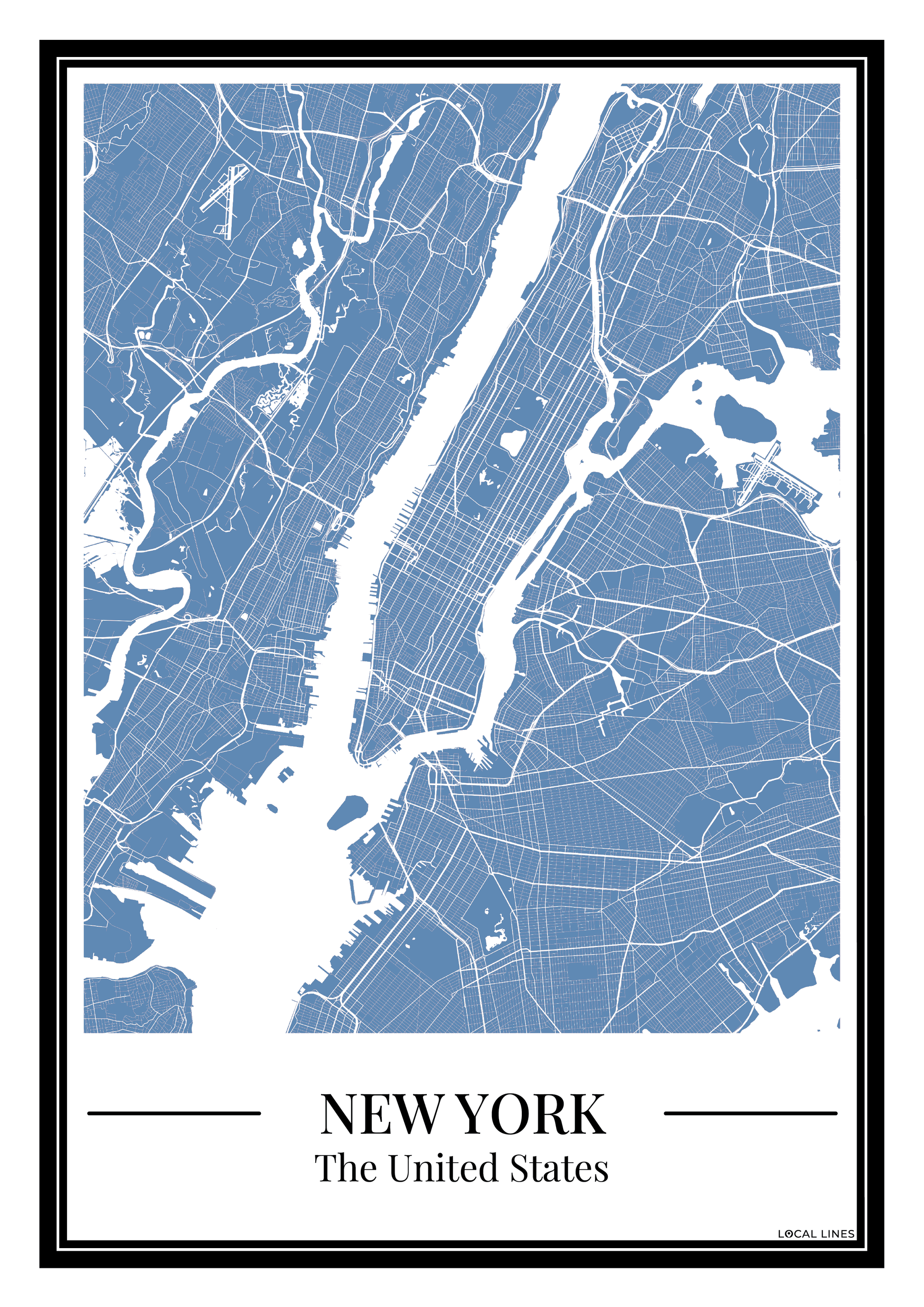 Ontdek de stad op een unieke manier met deze New York stadskaart poster in blauw. De gedetailleerde plattegrond van New York laat de straten en wijken duidelijk zien en maakt deze print een echte blikvanger voor aan de muur.