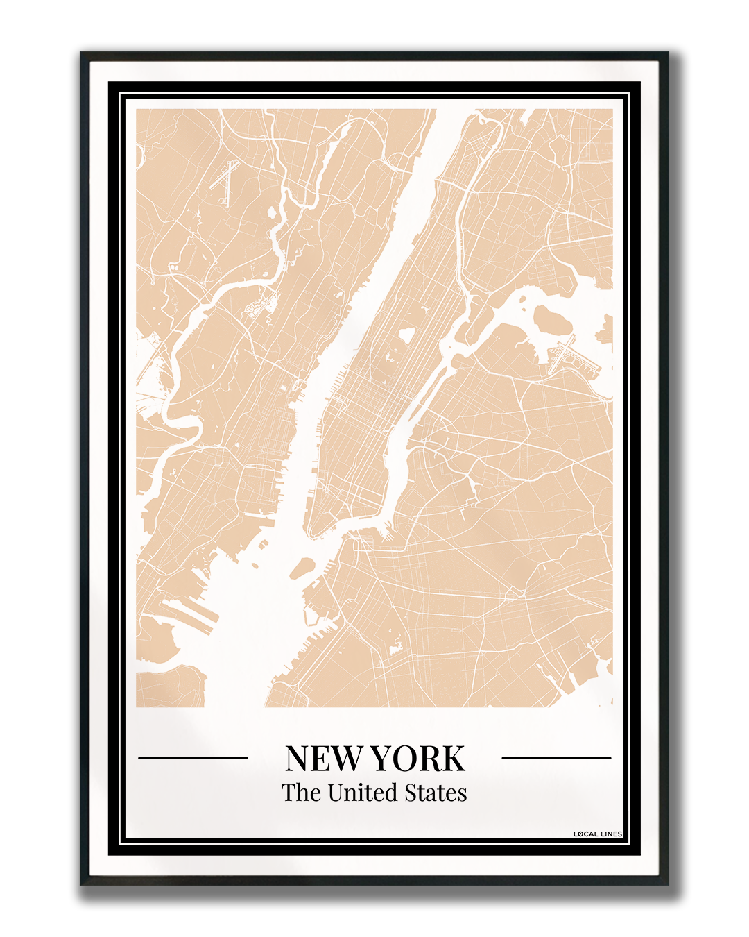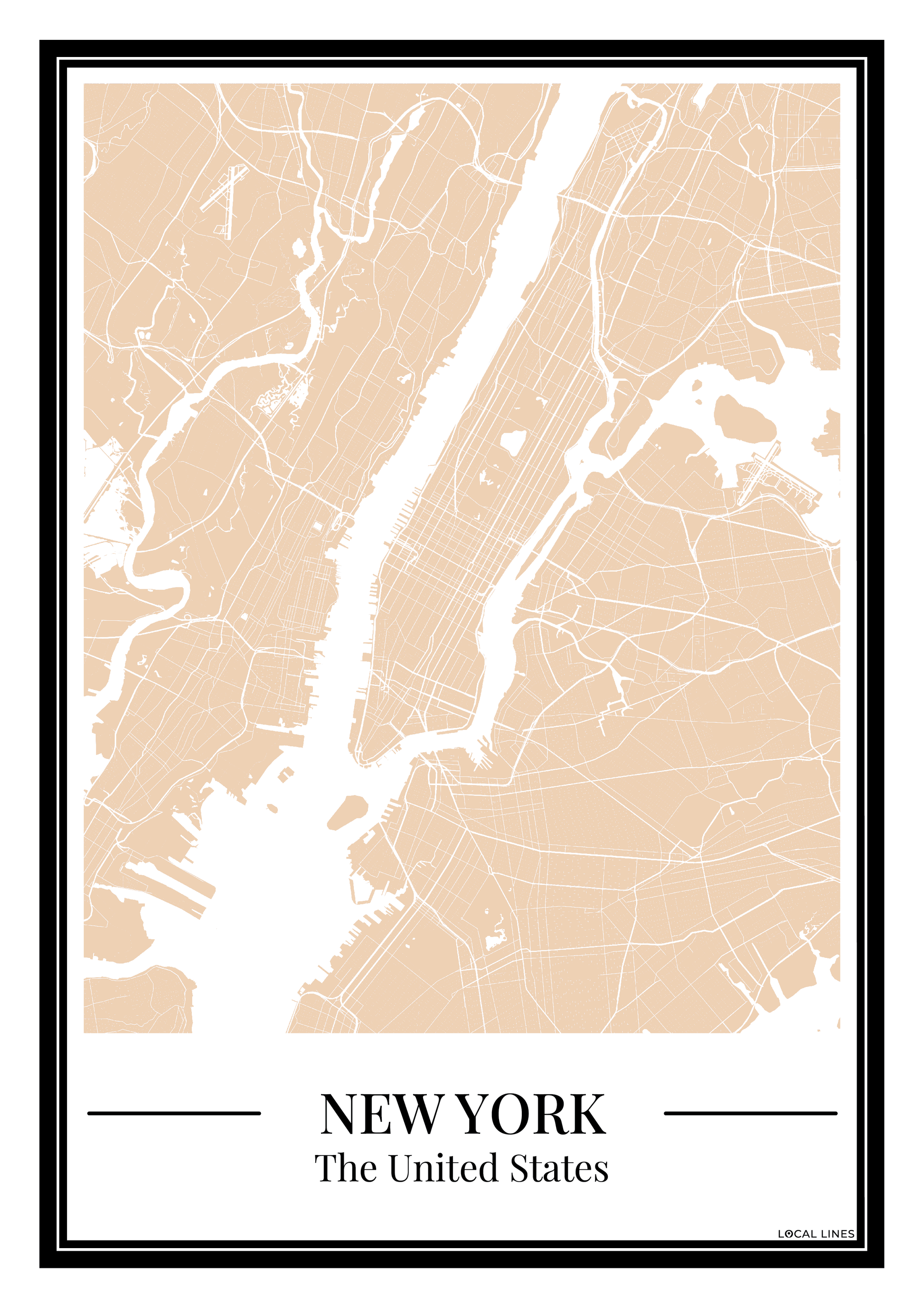 Geef je interieur een warme en stijlvolle uitstraling met deze New York stadskaart poster in beige. De gedetailleerde kaart laat de straten en wijken van New York duidelijk zien en maakt dit ontwerp een tijdloze toevoeging aan je wanddecoratie of een bijzonder cadeau voor elke gelegenheid.