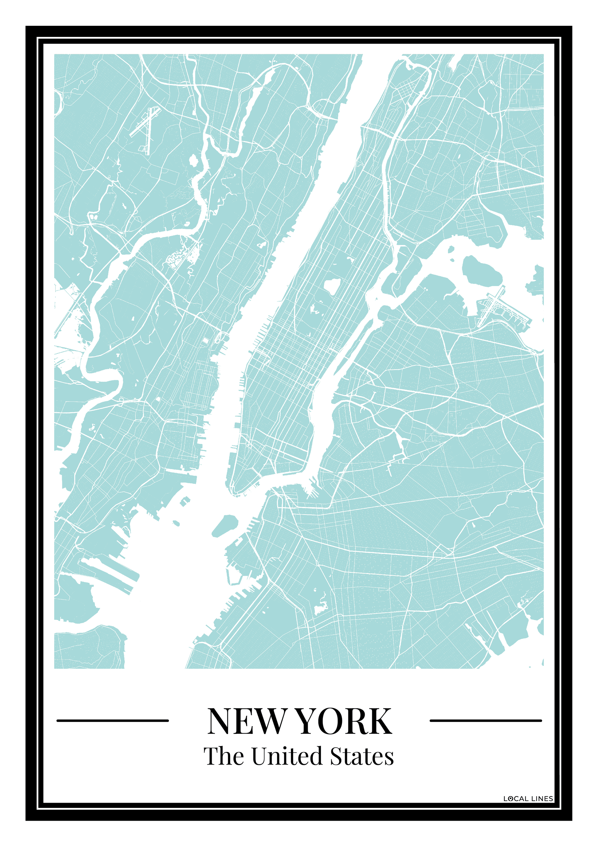 Breng een frisse en moderne sfeer in huis met deze poster van de New York stadskaart in lichtblauw. De gedetailleerde plattegrond toont de straten en wijken van New York op een stijlvolle manier, waardoor deze print een echte blikvanger is aan je muur. Perfect als persoonlijke wanddecoratie of als bijzonder cadeau voor een stadsliefhebber.