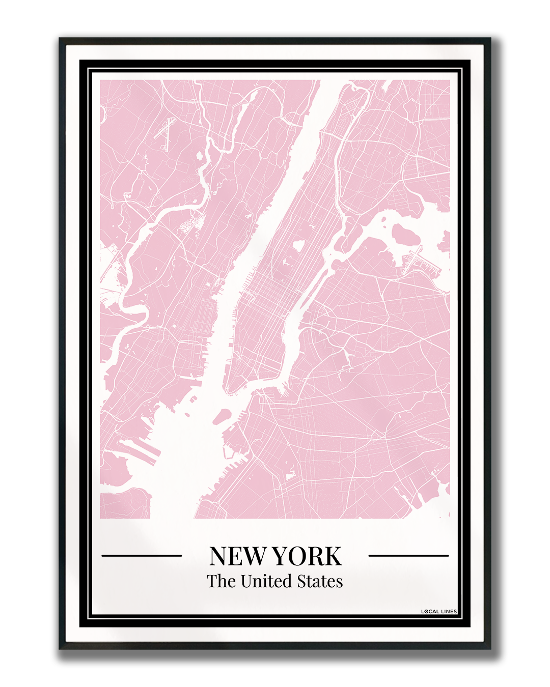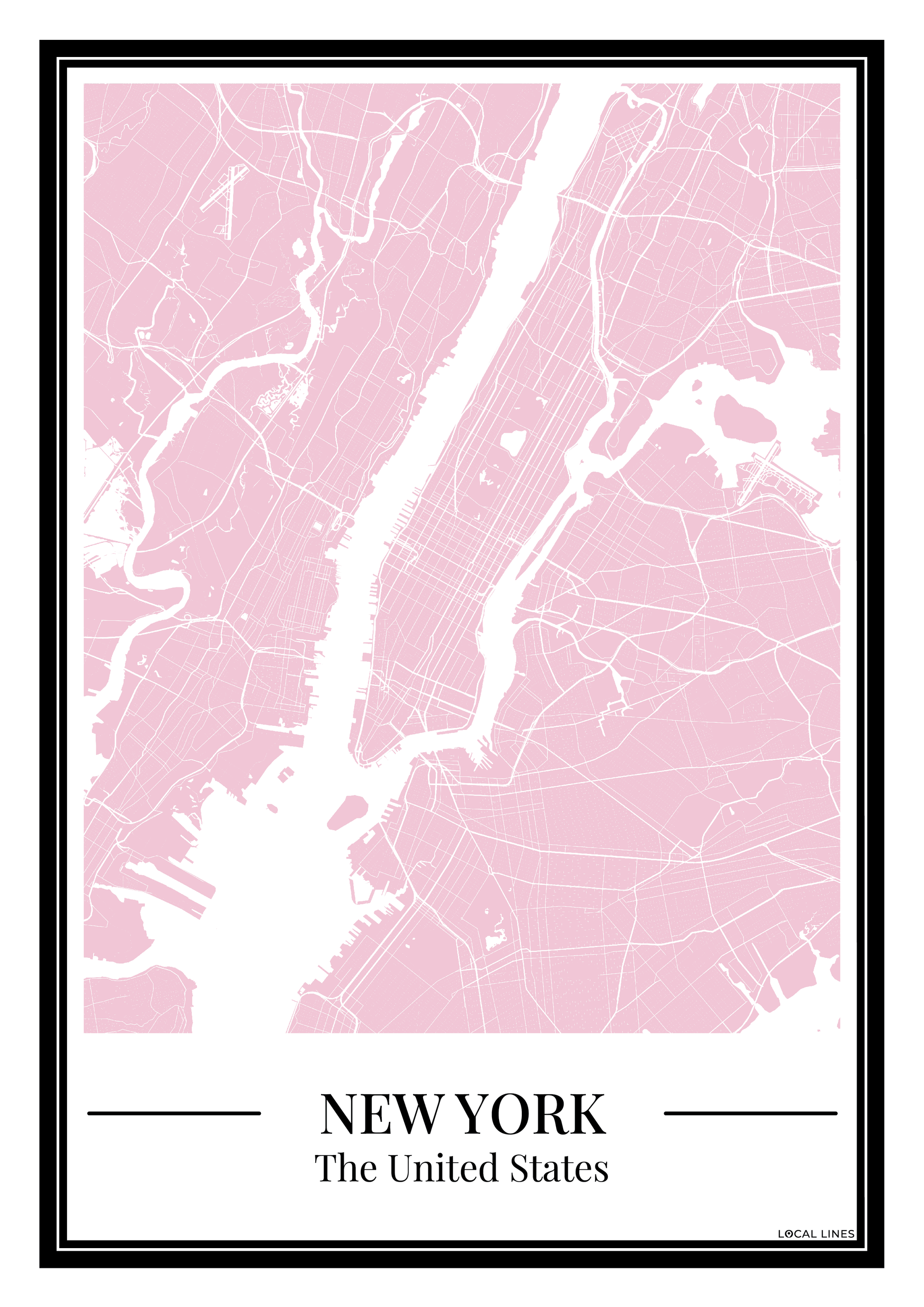 Breng New York in huis met deze roze stadskaart. De gedetailleerde plattegrond van New York maakt deze poster niet alleen geschikt als wanddecoratie, maar ook een origineel en persoonlijk cadeau.