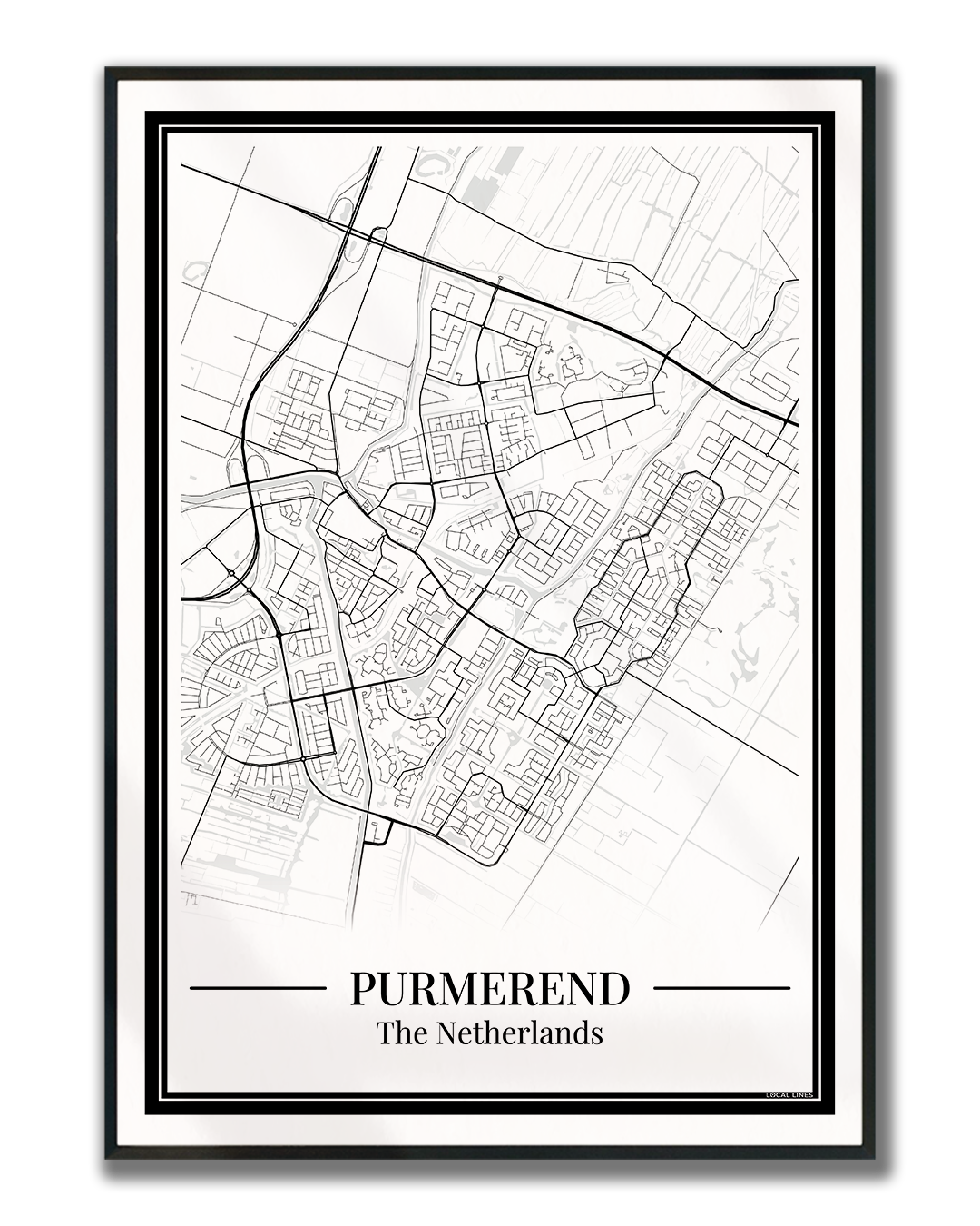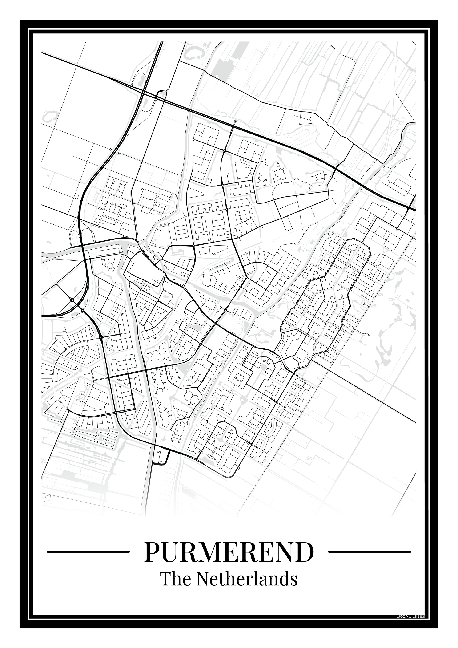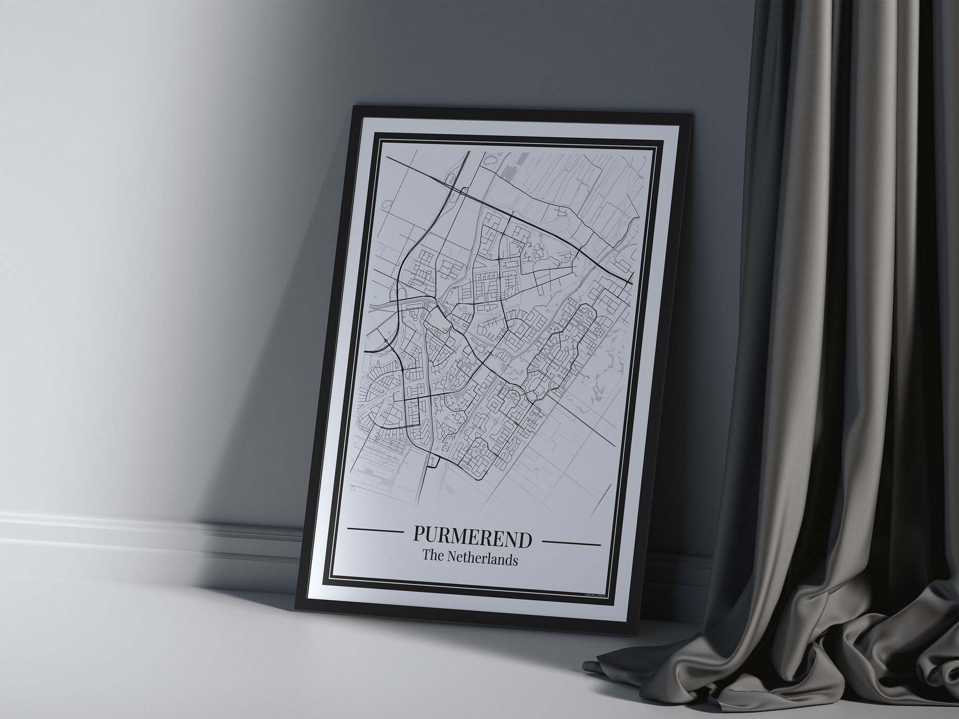 Geef je interieur een moderne en persoonlijke touch met deze Purmerend poster. De stadskaart toont alle straten en wijken en is ideaal als wanddecoratie of origineel cadeau.