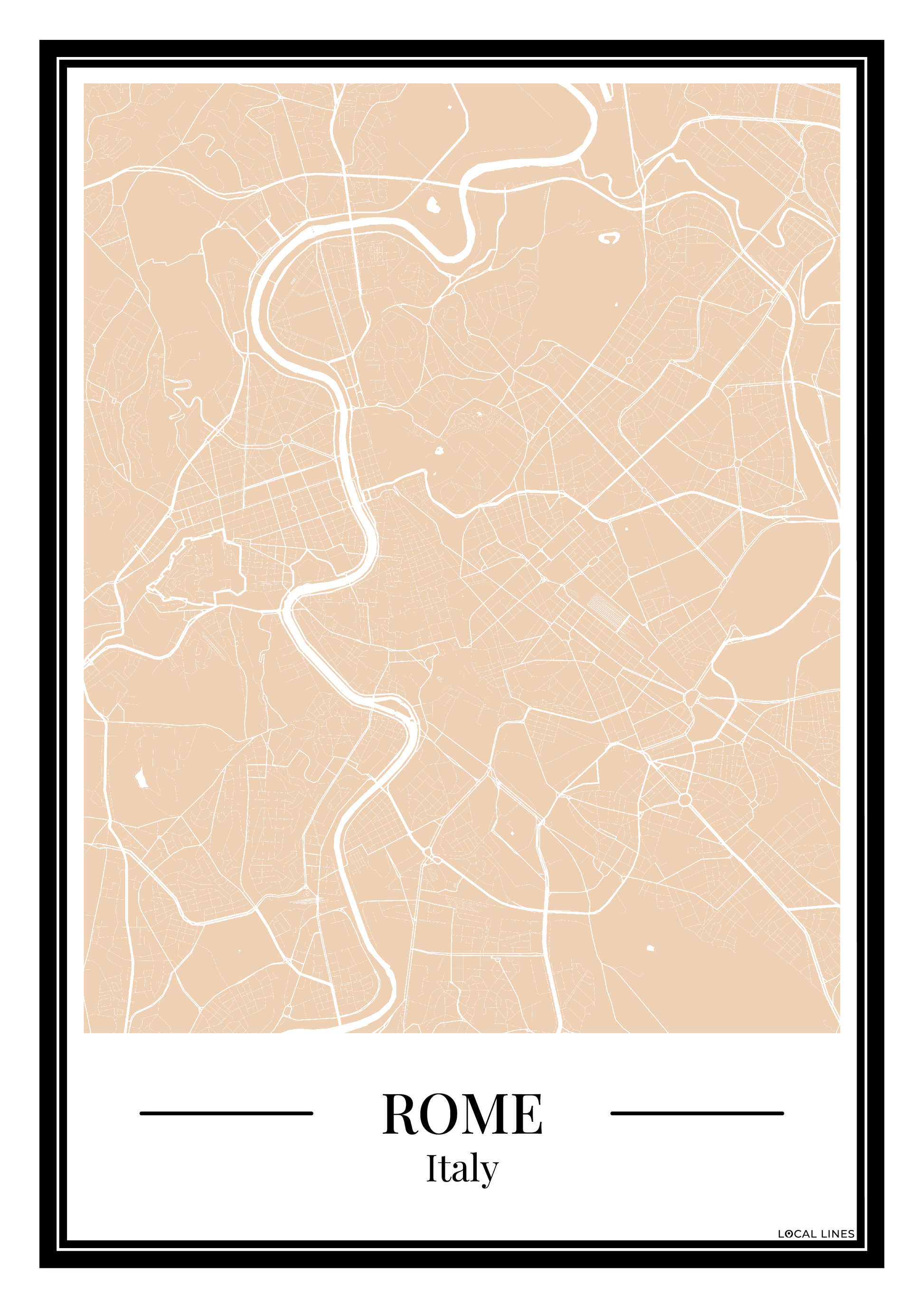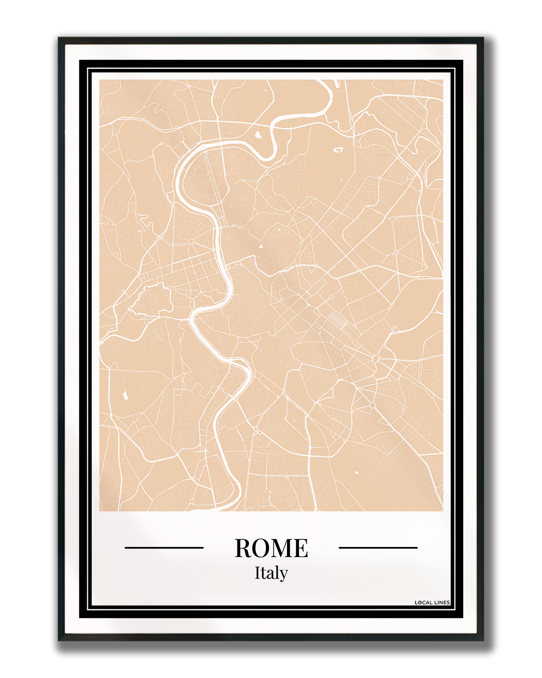 Geef je interieur een warme en stijlvolle uitstraling met deze Rome stadskaart poster in beige. De gedetailleerde kaart laat de straten en wijken van Rome duidelijk zien en maakt dit ontwerp een tijdloze toevoeging aan je wanddecoratie of een bijzonder cadeau voor elke gelegenheid.