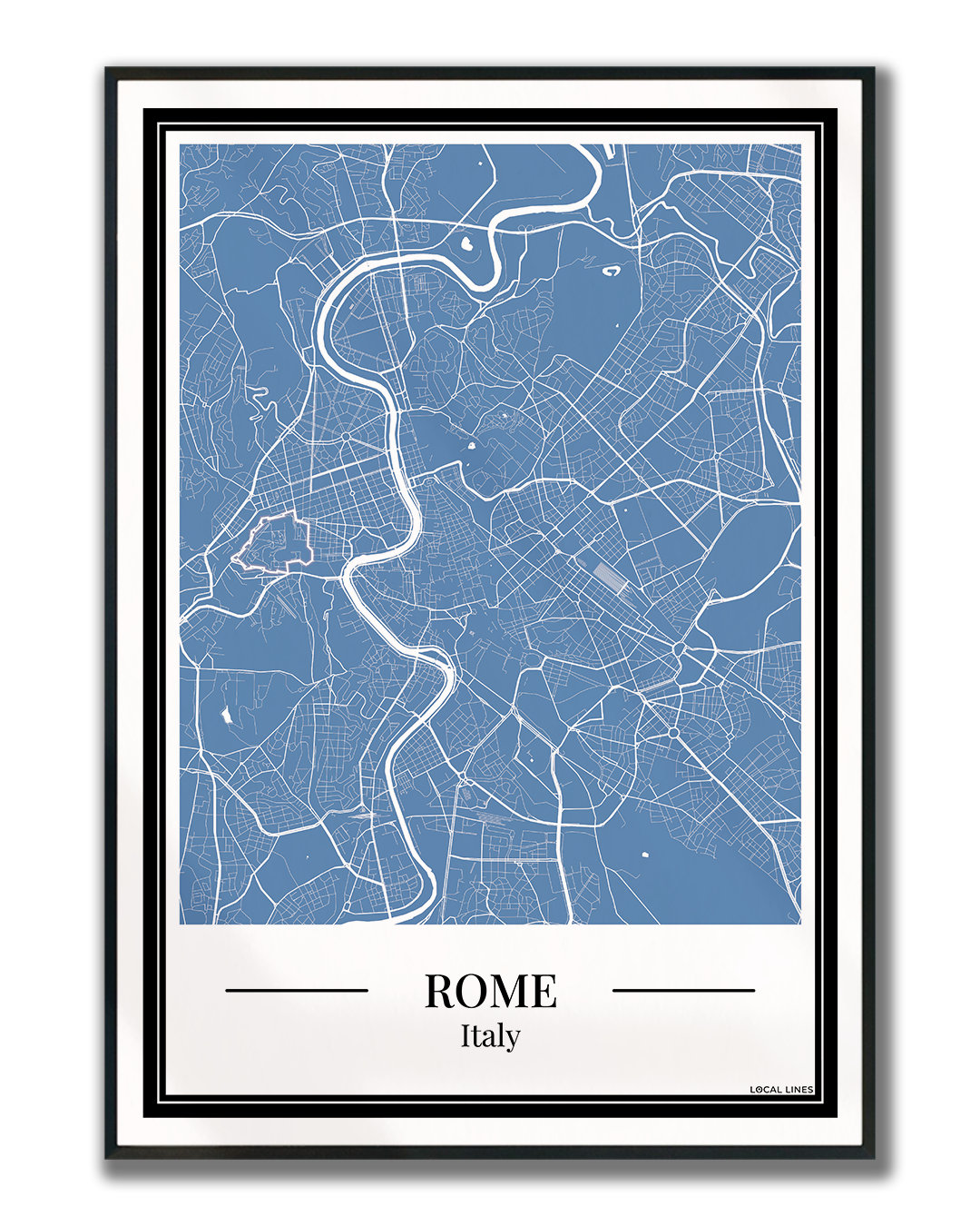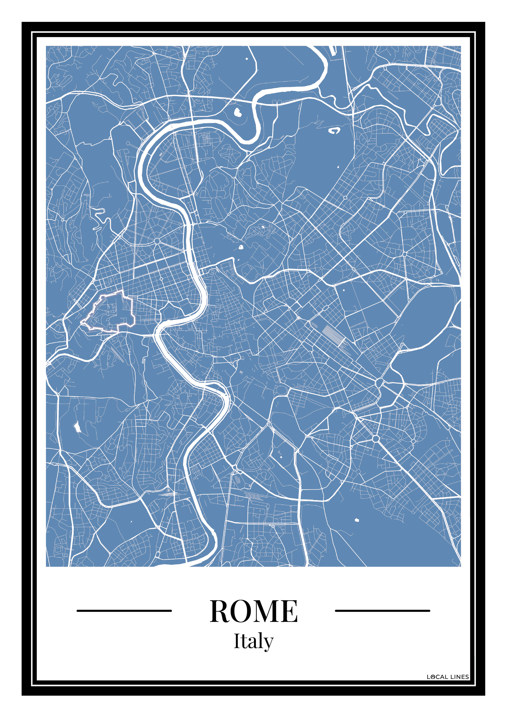 Ontdek de stad op een unieke manier met deze Rome stadskaart poster in blauw. De gedetailleerde plattegrond van Rome laat de straten en wijken duidelijk zien en maakt deze print een echte blikvanger voor aan de muur.