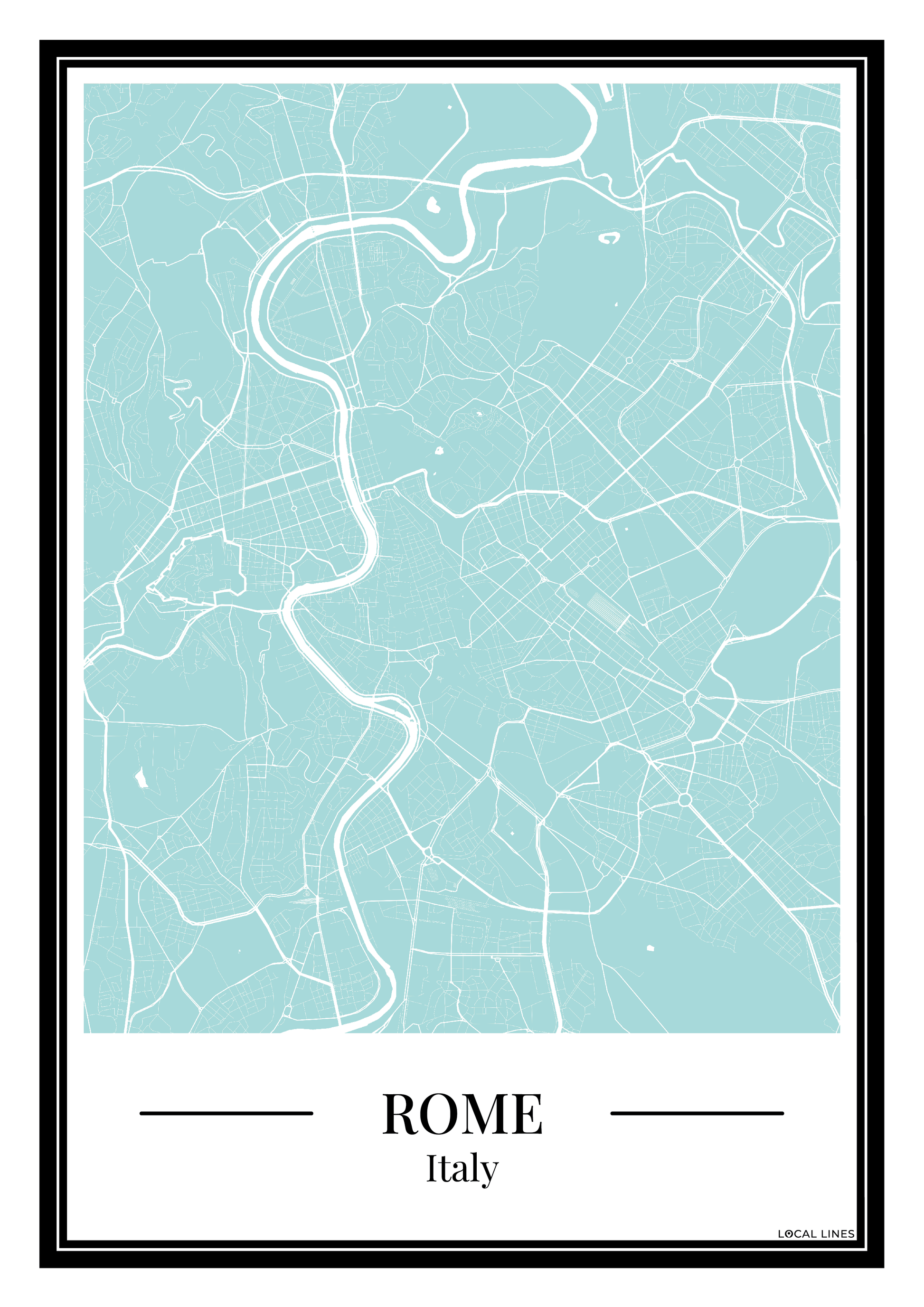 Breng een frisse en moderne sfeer in huis met deze poster van de Rome stadskaart in lichtblauw. De gedetailleerde plattegrond toont de straten en wijken van Rome op een stijlvolle manier, waardoor deze print een echte blikvanger is aan je muur. Perfect als persoonlijke wanddecoratie of als bijzonder cadeau voor een stadsliefhebber.