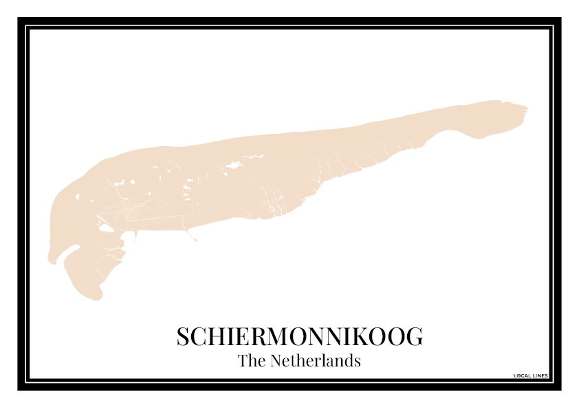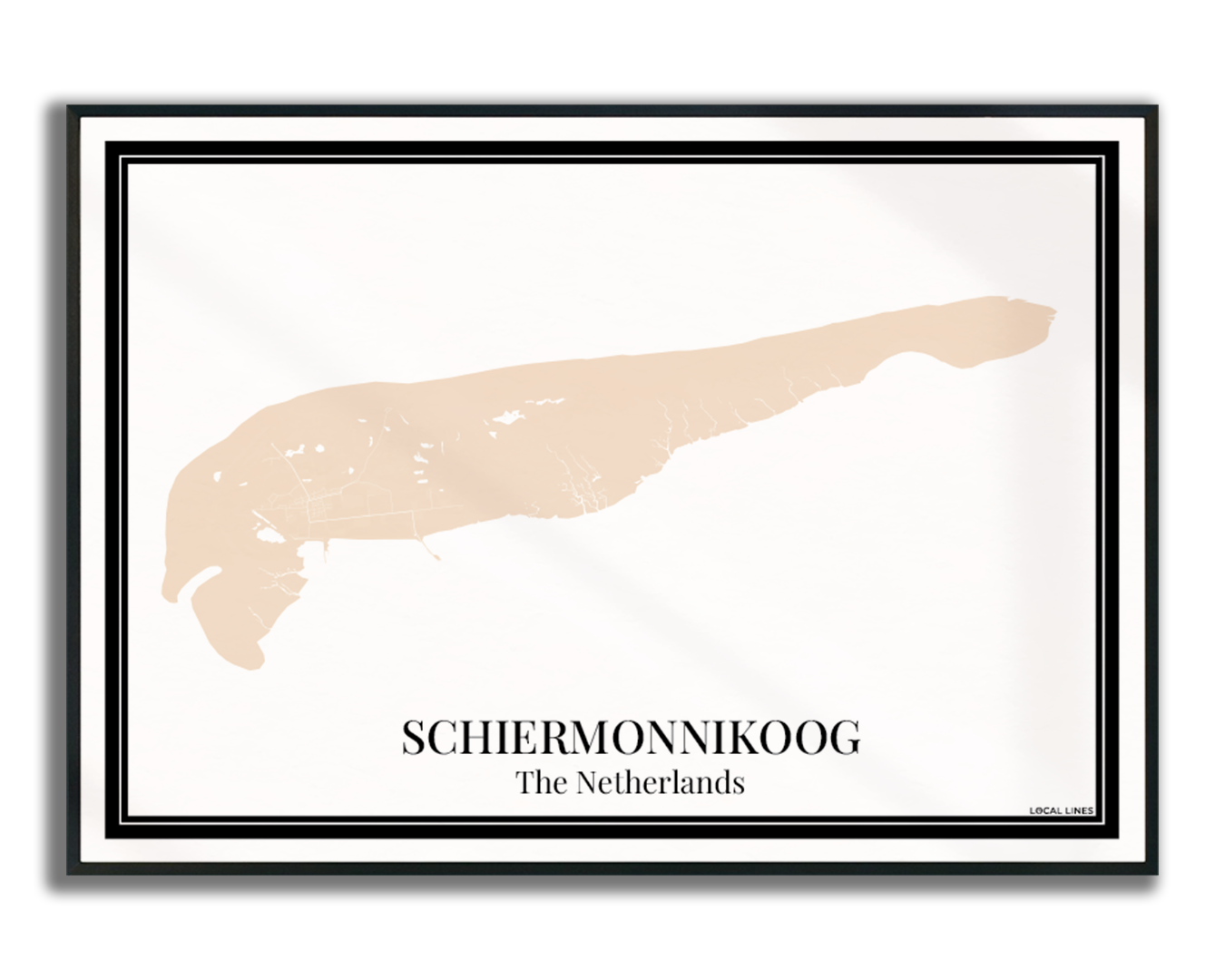 Geef je interieur een warme en stijlvolle uitstraling met deze Schiermonnikoog eilandkaart poster in beige. De gedetailleerde kaart laat de straten en plaatsen van Schiermonnikoog duidelijk zien en maakt dit ontwerp een tijdloze toevoeging aan je wanddecoratie of een bijzonder cadeau voor elke gelegenheid.