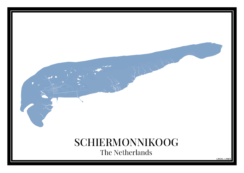 Ontdek de stad op een unieke manier met deze Schiermonnikoog eilandkaart poster in blauw. De gedetailleerde plattegrond van Schiermonnikoog laat de straten en plaatsen duidelijk zien en maakt deze print een echte blikvanger voor aan de muur.