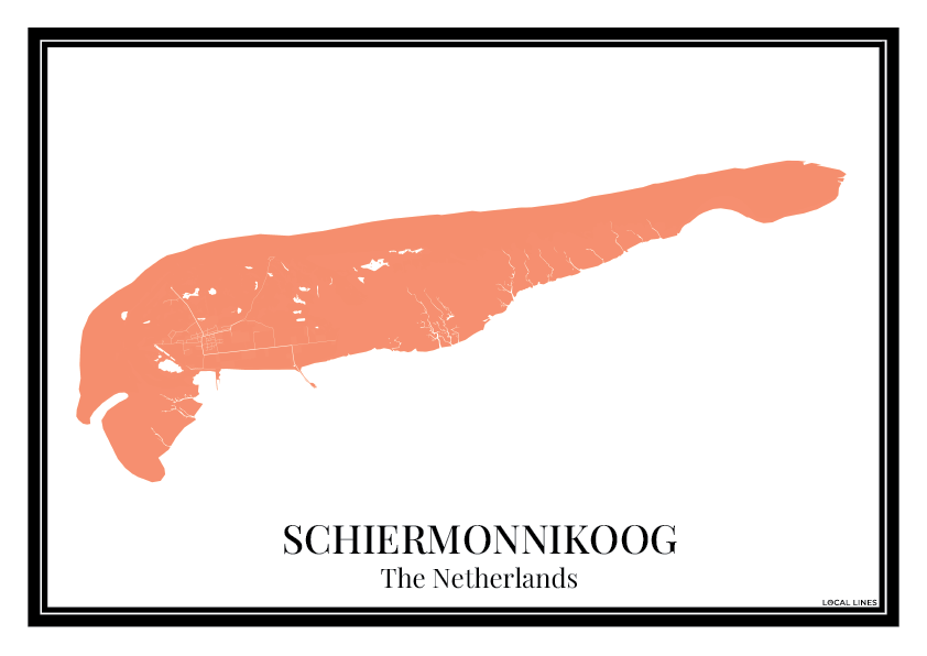 Geef je interieur een warme en stijlvolle uitstraling met deze Schiermonnikoog eilandkaart poster in oranje. De gedetailleerde kaart laat de straten en plaatsen van Schiermonnikoog duidelijk zien en maakt dit ontwerp een tijdloze toevoeging aan je wanddecoratie of een bijzonder cadeau voor elke gelegenheid.