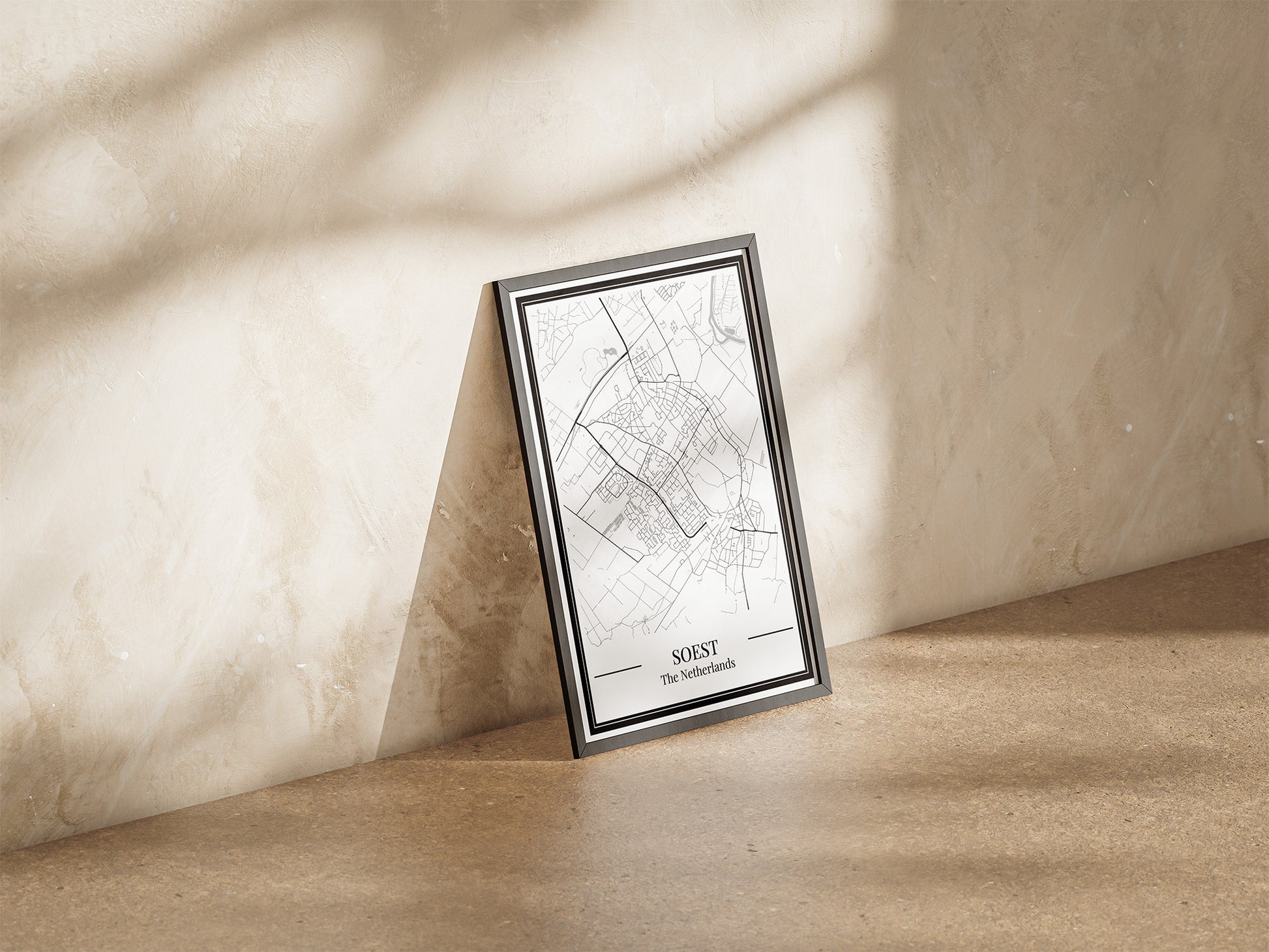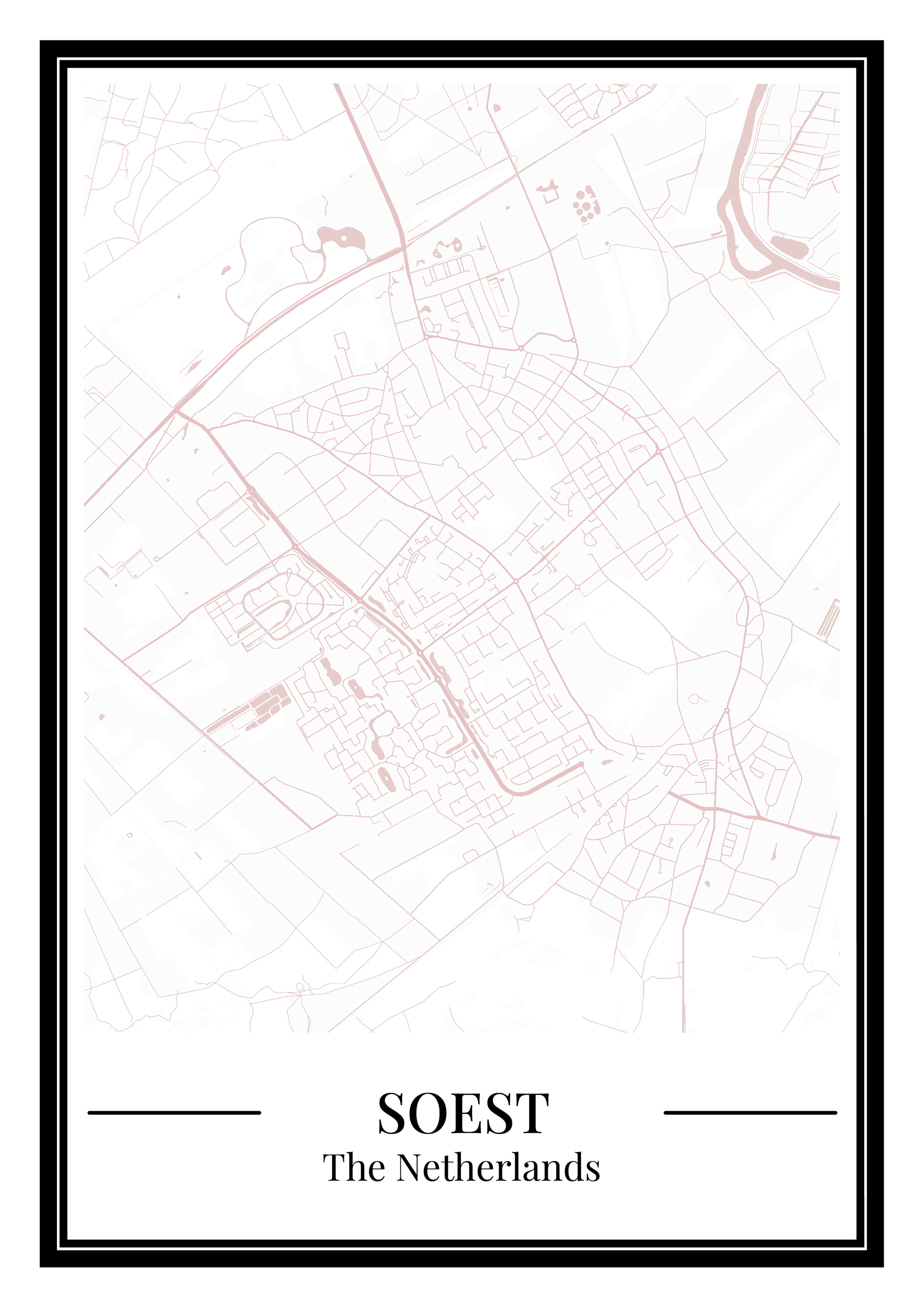 Breng Soest in huis met deze roze dorpskaart. De gedetailleerde plattegrond van Soest maakt deze poster niet alleen geschikt als wanddecoratie, maar ook een origineel en persoonlijk cadeau.