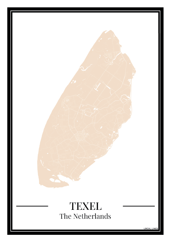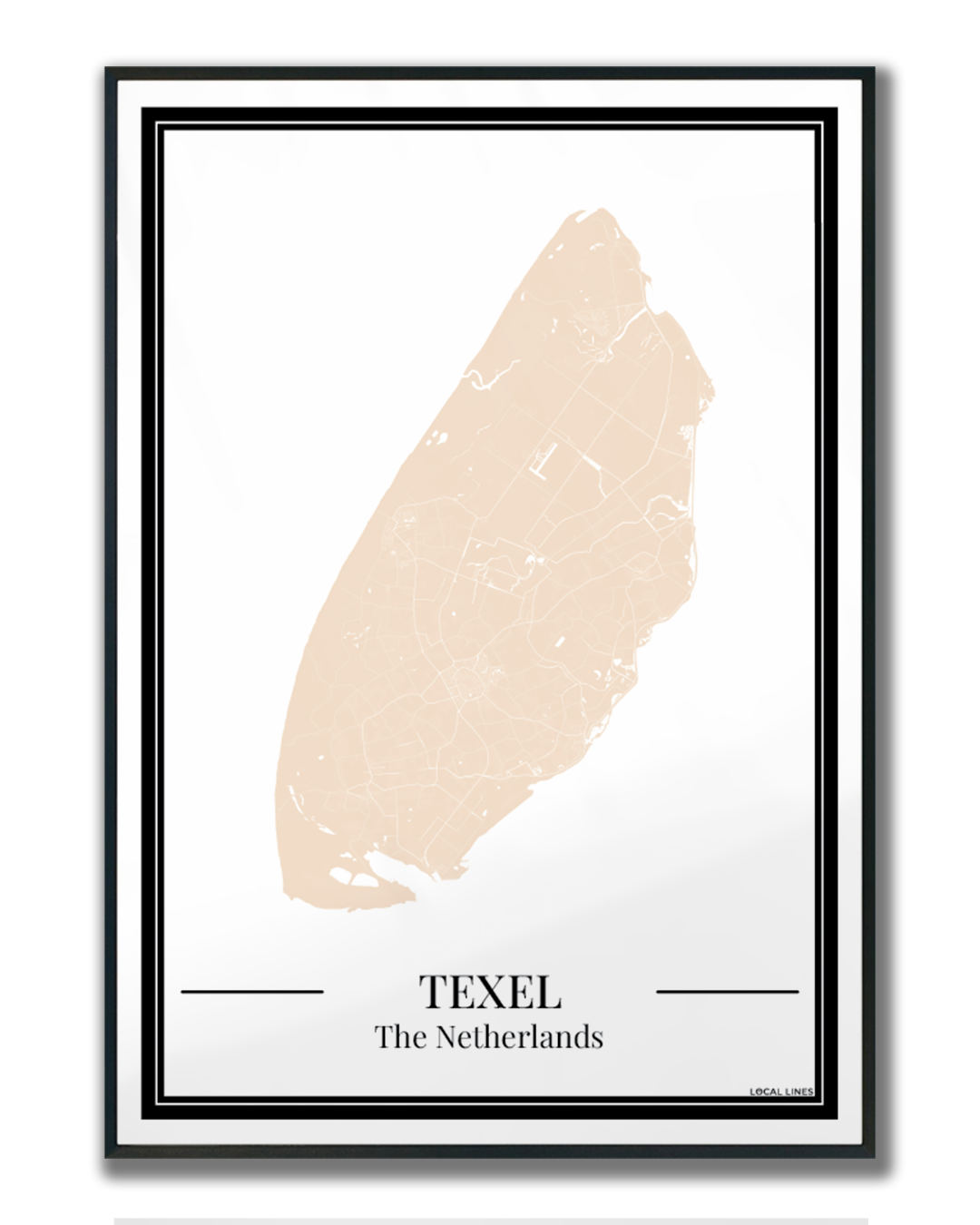 Geef je interieur een warme en stijlvolle uitstraling met deze Texel eilandkaart poster in beige. De gedetailleerde kaart laat de straten en plaatsen van Texel duidelijk zien en maakt dit ontwerp een tijdloze toevoeging aan je wanddecoratie of een bijzonder cadeau voor elke gelegenheid.
