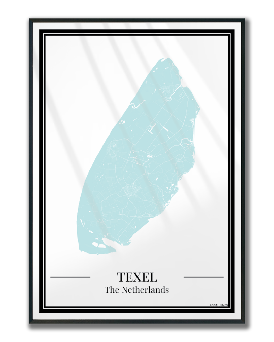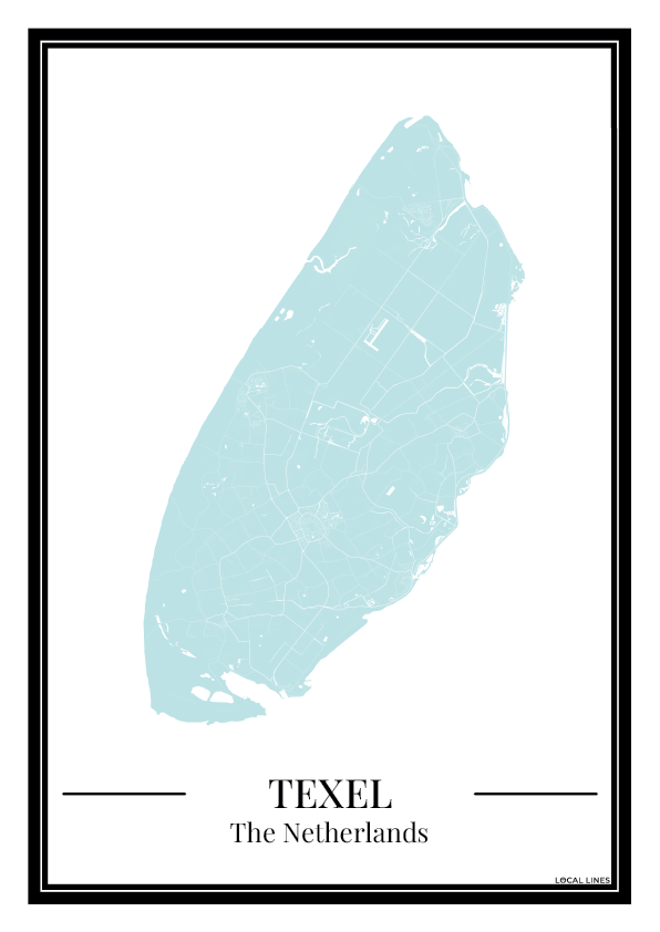 Breng een frisse en moderne sfeer in huis met deze poster van de Texel eilandkaart in lichtblauw. De gedetailleerde plattegrond toont de straten en plaatsen van Texel op een stijlvolle manier, waardoor deze print een echte blikvanger is aan je muur. Perfect als persoonlijke wanddecoratie of als bijzonder cadeau voor een eilandliefhebber.