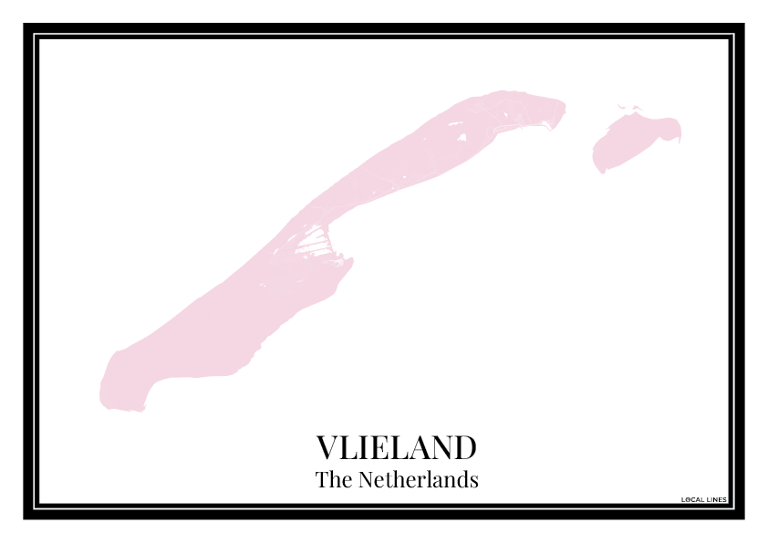 Breng Vlieland in huis met deze roze eilandkaart. De gedetailleerde plattegrond van Vlieland maakt deze poster niet alleen geschikt als wanddecoratie, maar ook een origineel en persoonlijk cadeau.
